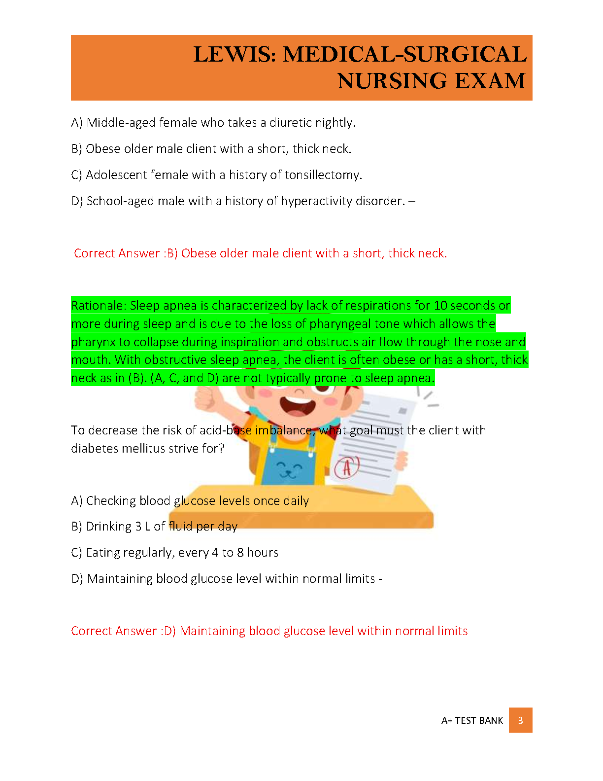 Unlock your potential and ace your nursing exams with this comprehensive Test Bank for the 12th Edition of Lewis's Medical-Surgical Nursing by Harding and Kwong. This invaluable resource provides a complete set of verified questions for Exam 1, complete with detailed answers and in-depth rationales to ensure you understand the core concepts. Already proven to help students achieve A+ grades, this guide is your ultimate tool for mastering complex topics and passing your medical-surgical nursing course with confidence.