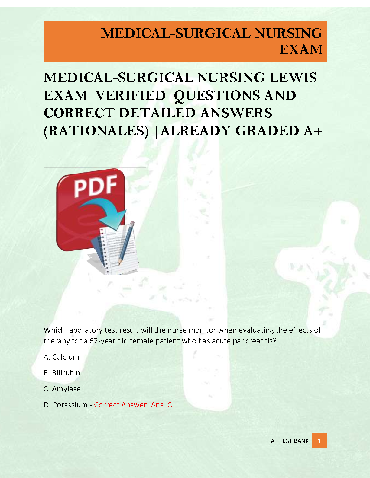 Test Bank for Lewis's Medical-Surgical Nursing, 12th Edition by Harding, Kwong, Roberts, Hagler & Reinisch - Verified Questions and Rationales