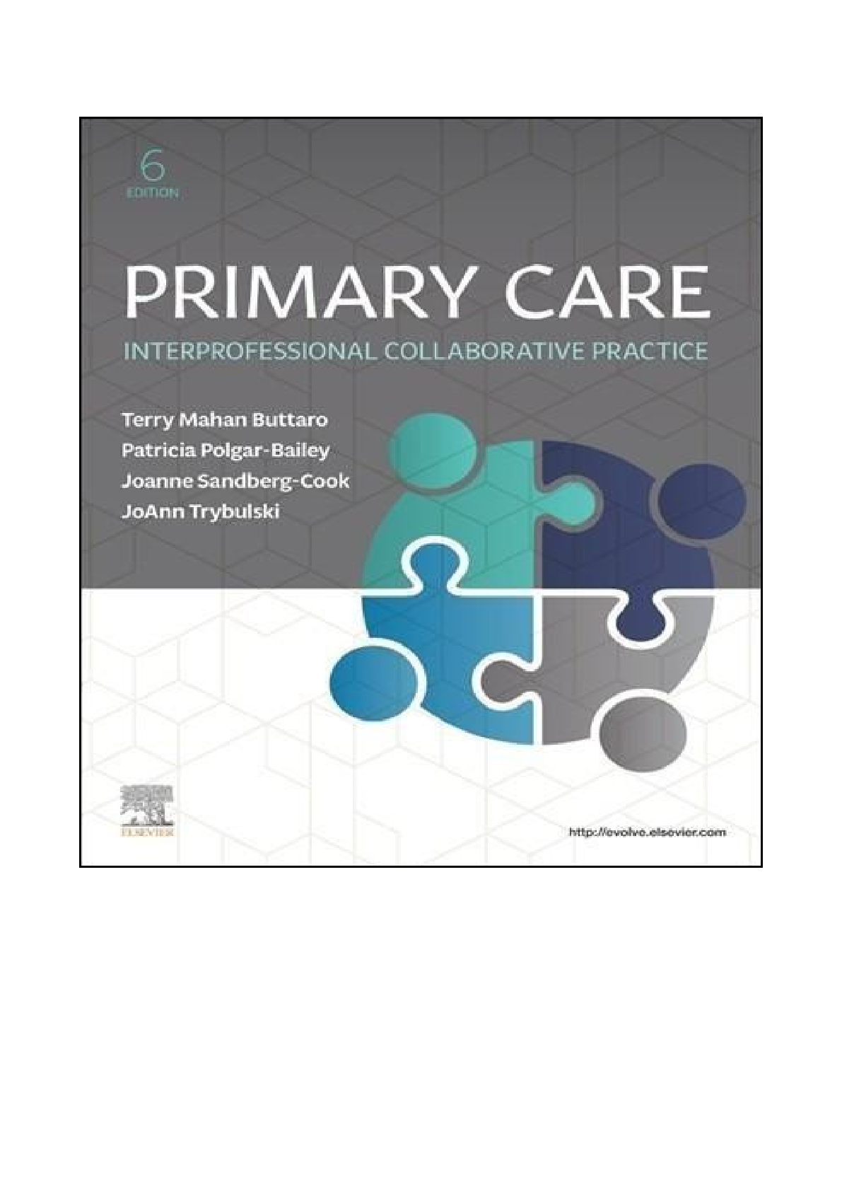 Test Bank for Primary Care: Interprofessional Collaborative Practice, 6th Edition By Terry Mahan Buttaro, Patricia Polgar-Bailey, Joanne Sandberg-Cook, and JoAnn Trybulski