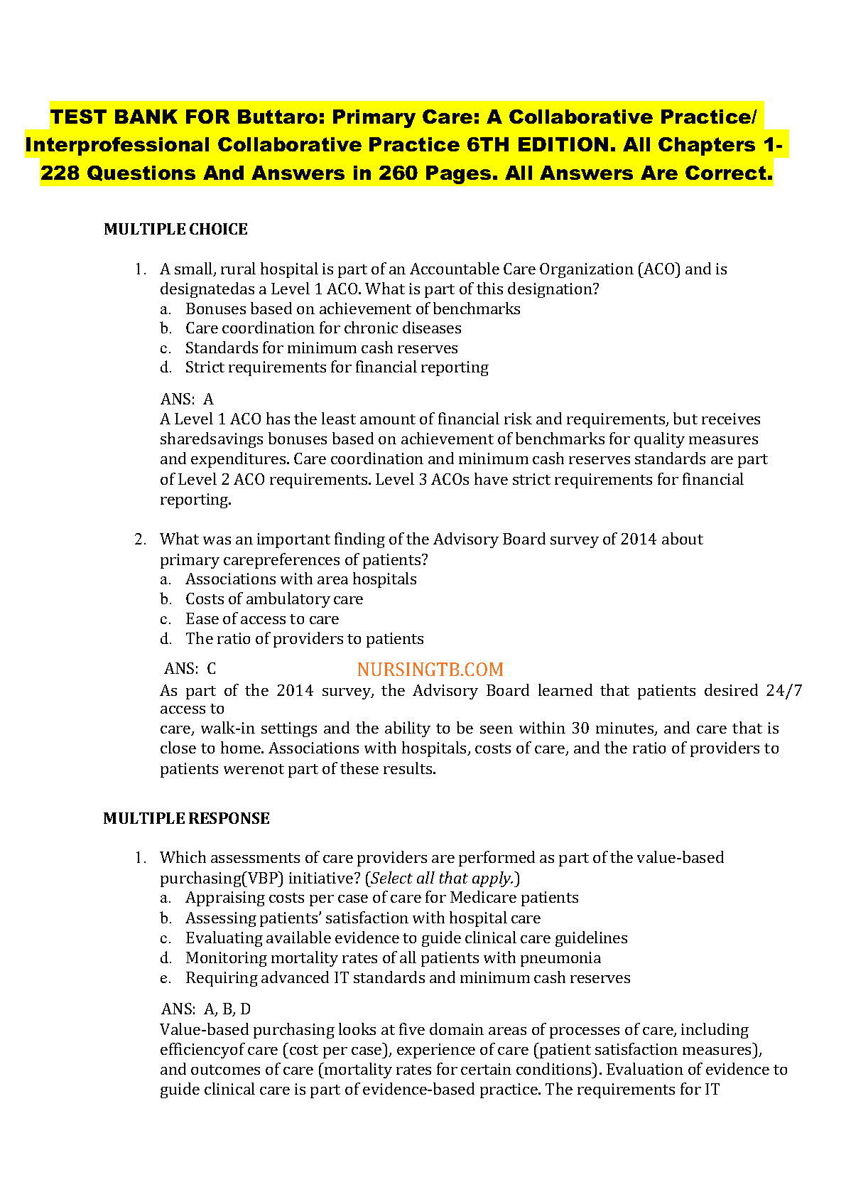Instantly download the complete Test Bank for Primary Care: Interprofessional Collaborative Practice, 6th Edition, by Terry Mahan Buttaro et al. This is not the textbook; it is a powerful study aid packed with hundreds of practice questions and answers that mirror your upcoming exams. Designed for the 2025/2026 academic curriculum, this resource is expertly crafted to help you master complex topics, boost your confidence, and achieve top grades. Prepare smarter, not harder, and ensure you pass your primary care exams on the very first try. Avoid resits and excel in your nurse practitioner program with this indispensable guide.