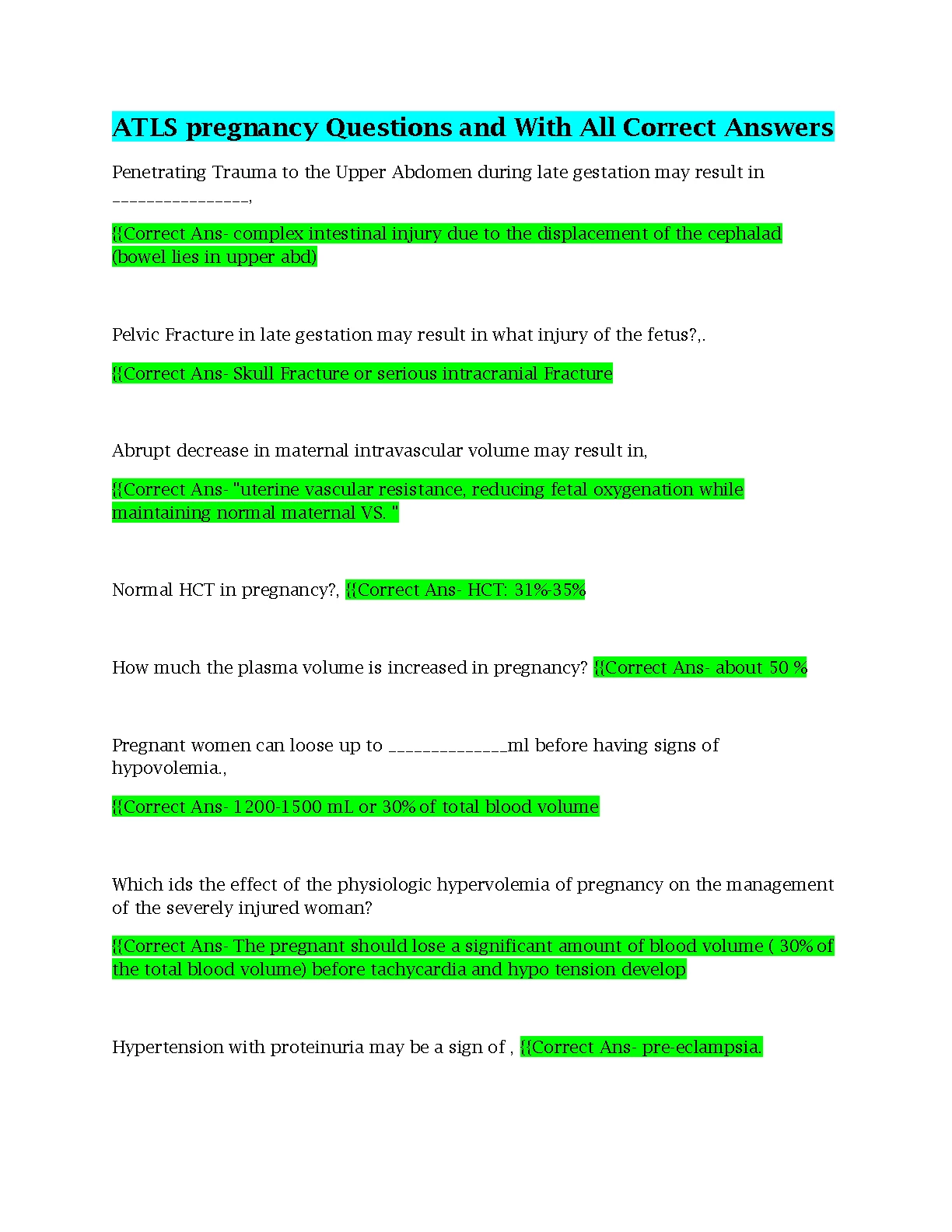 ATLS pregnancy Questions and With All Correct Answers. GRADED A+