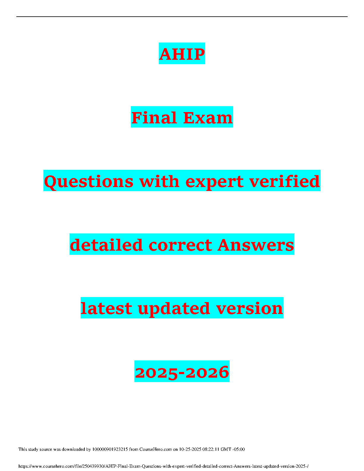 AHIP Final Exam 2025-2026: Complete Questions and Expert-Verified Answers