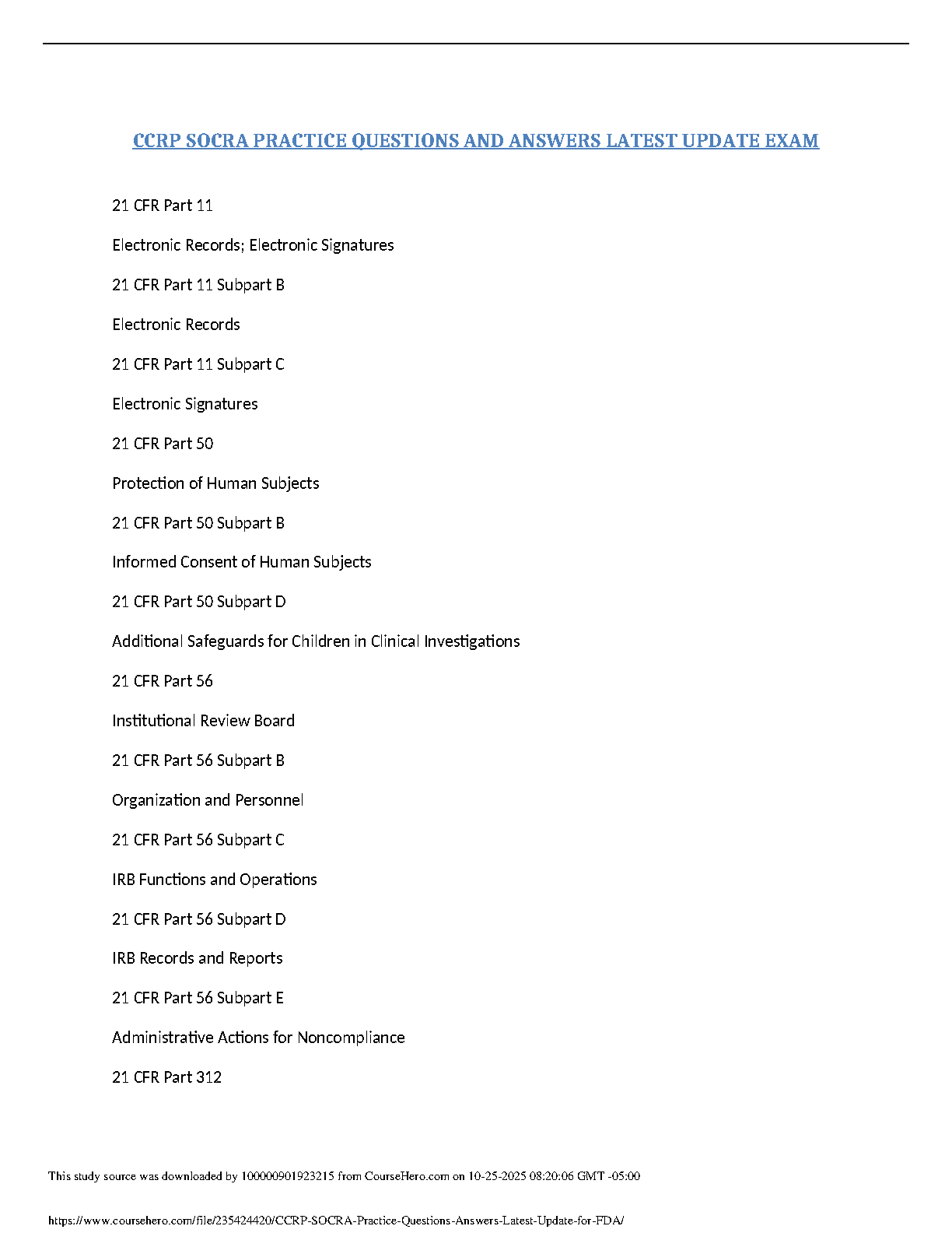 SOCRA CCRP Certification Exam Test Bank: Master the Exam with the Latest Practice Questions and Verified Answers 2024-2025