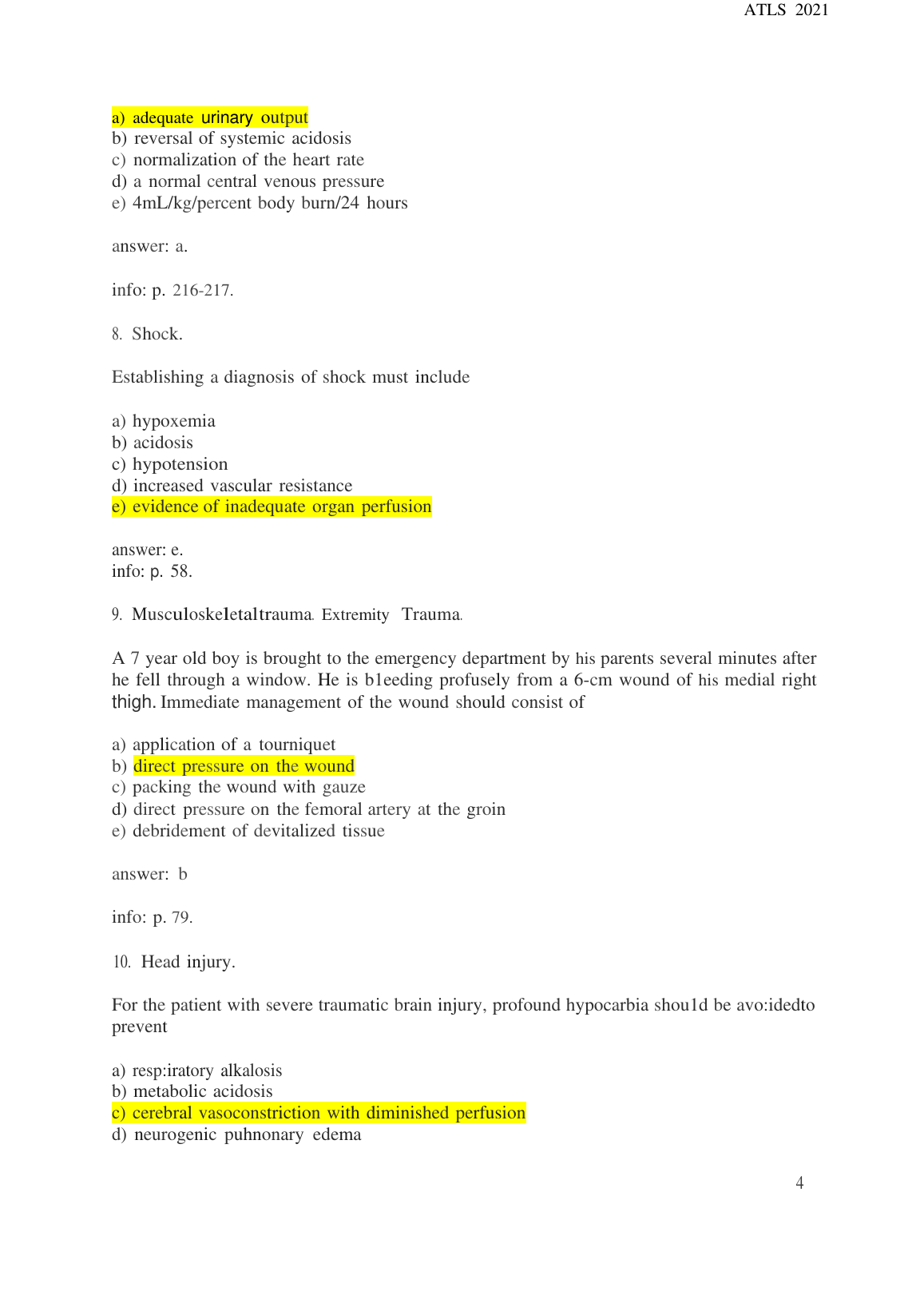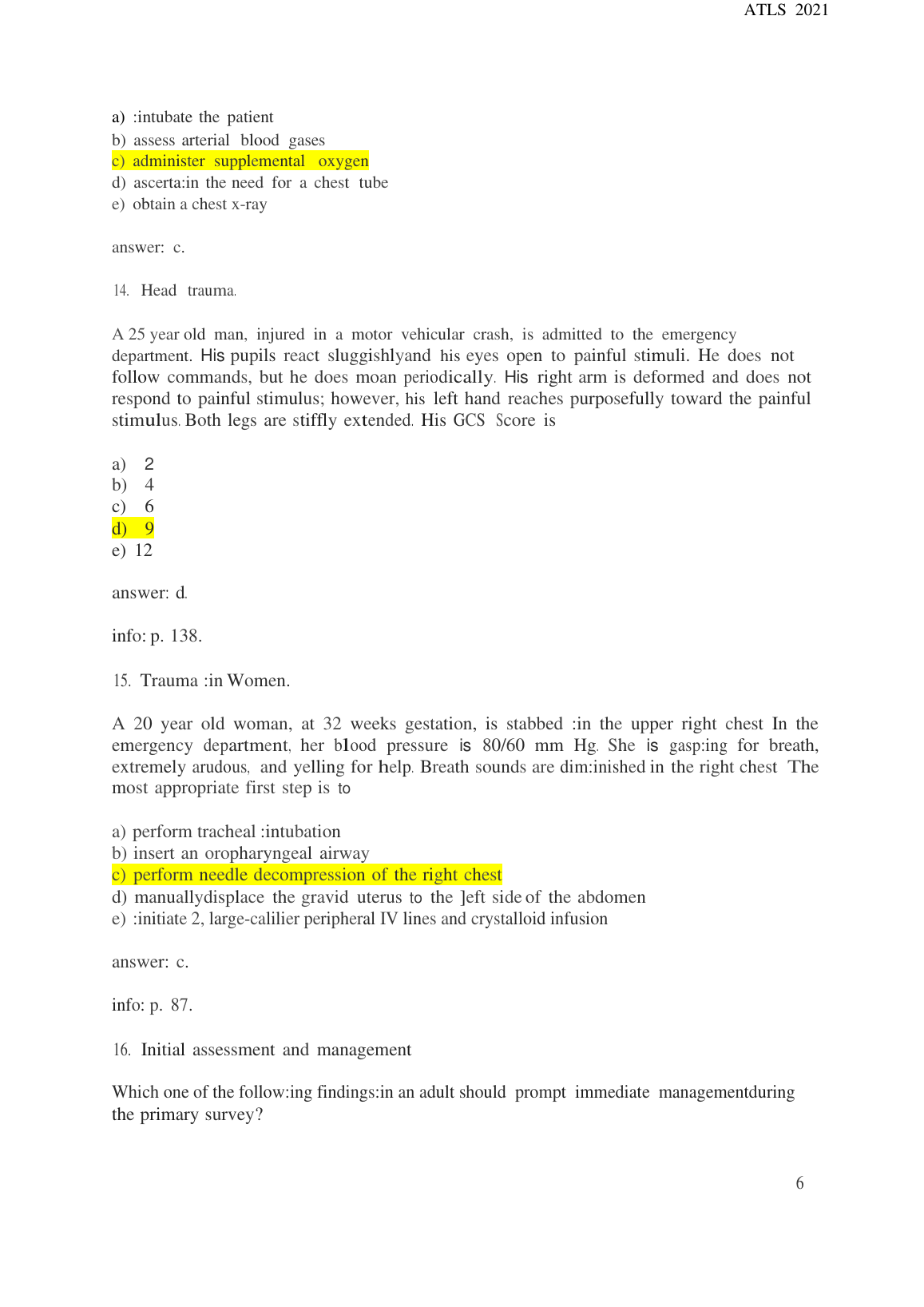 ATLS COMPLETED PRE TEST. LATEST UPDATED VERSION 2023