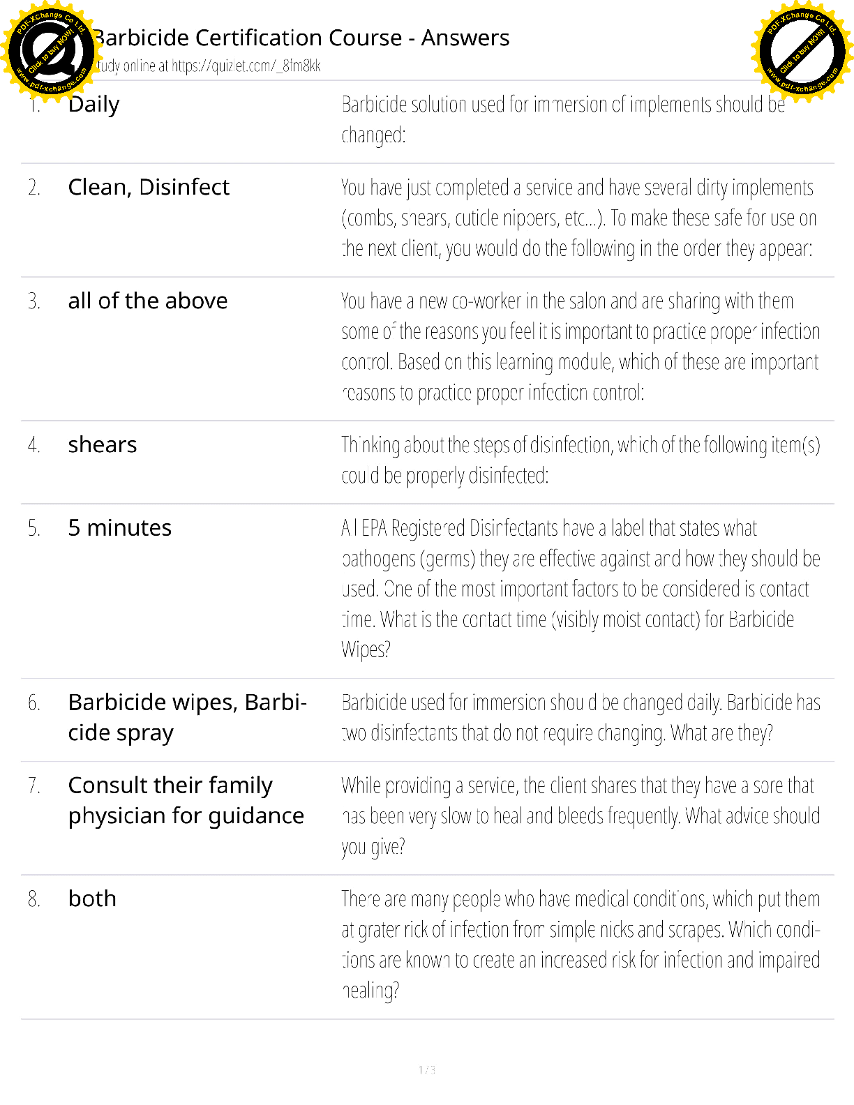 Barbicide Certification Exam Q&A Study Guide 2025/2026: The Ultimate Resource to Pass on Your First Try