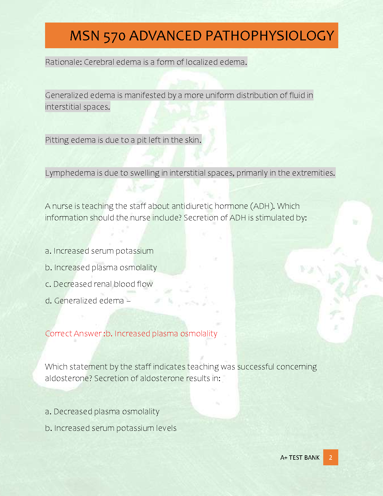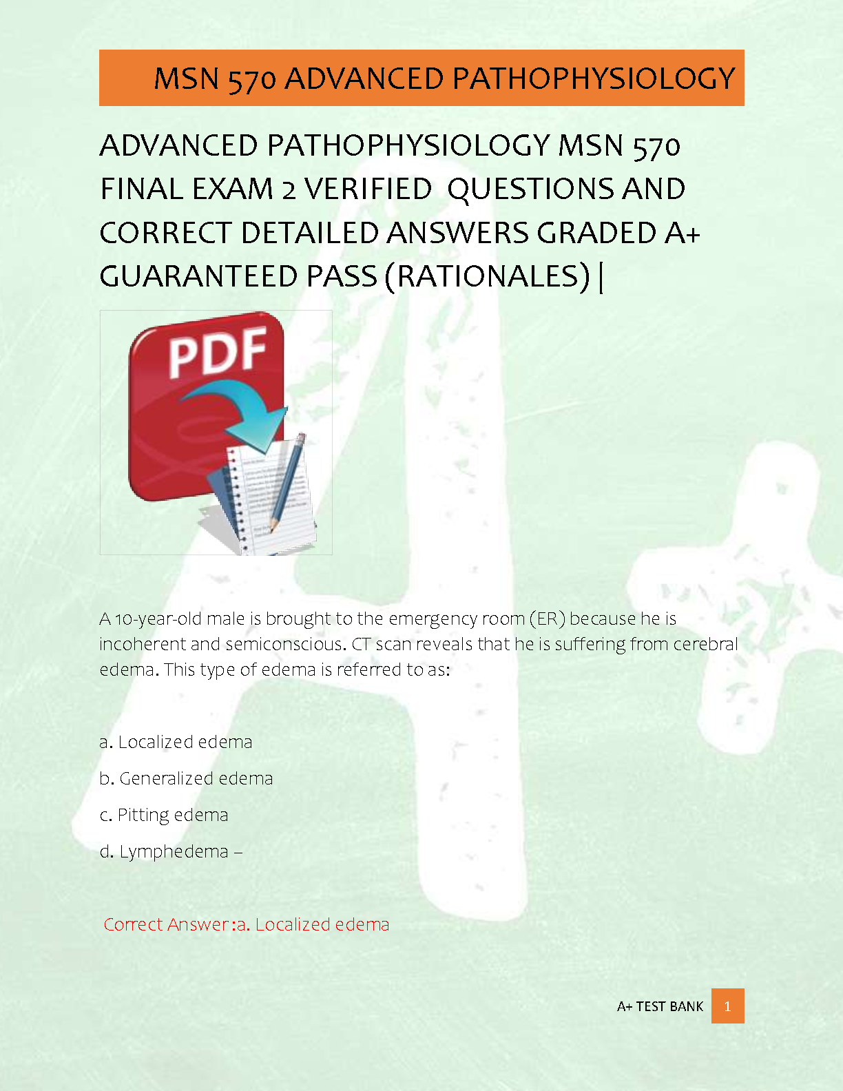 Unlock success in your MSN 570 Advanced Pathophysiology course with our comprehensive test bank for the Final Exam. This essential study tool, aligned with the 9th Edition by McCance, Huether, & Brashers, provides a full spectrum of verified questions, complete with in-depth answers and detailed rationales. Each question is crafted to mirror the actual exam format, ensuring you are fully prepared to tackle complex topics and clinical scenarios. Boost your confidence, deepen your understanding, and aim for that A+ grade. This is the ultimate exam prep resource for nursing students dedicated to passing on their first attempt.