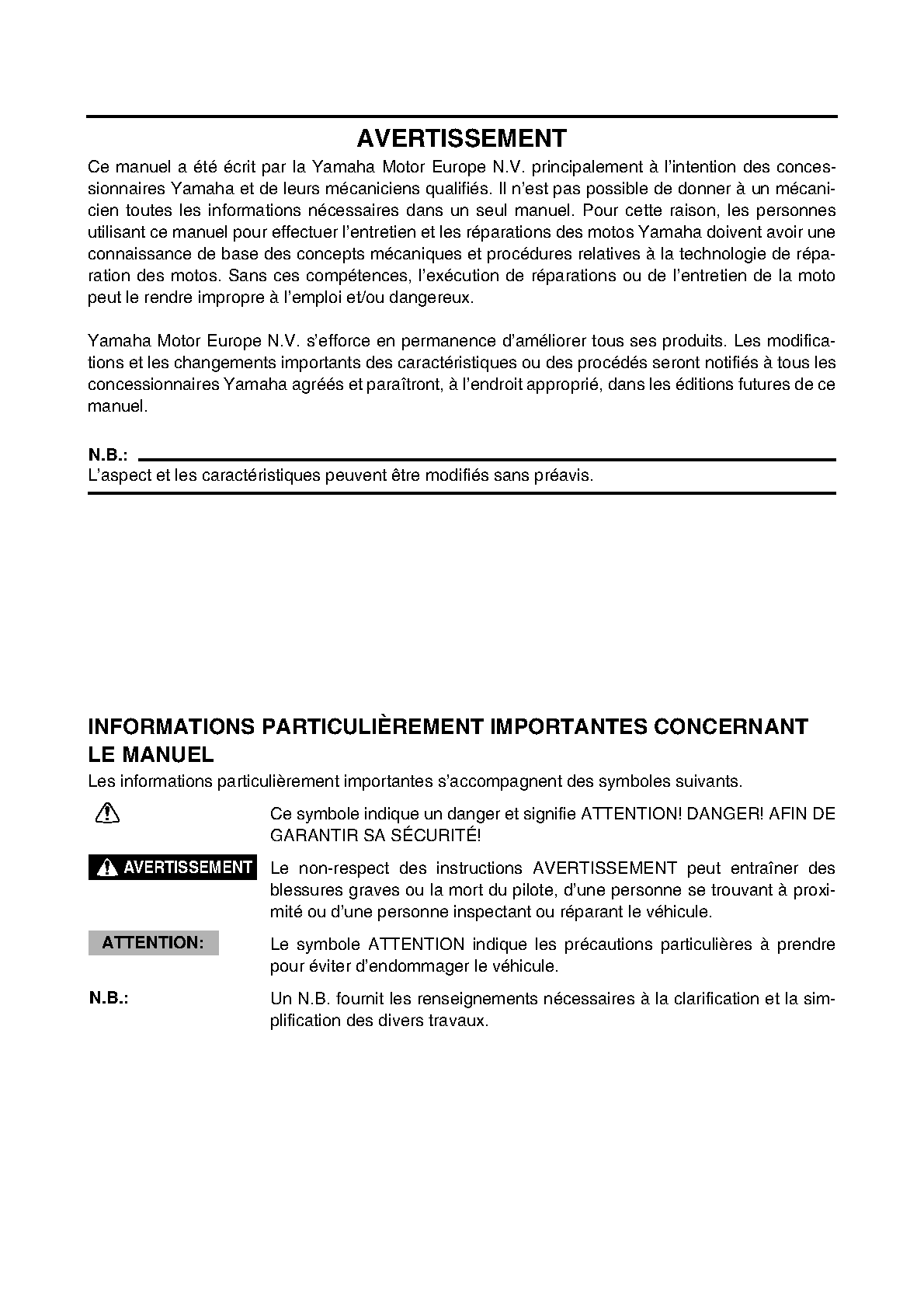 Official 2006 Yamaha XT125R & XT125X Service Repair Workshop Manual (French Edition) by Yamaha Motor Co.