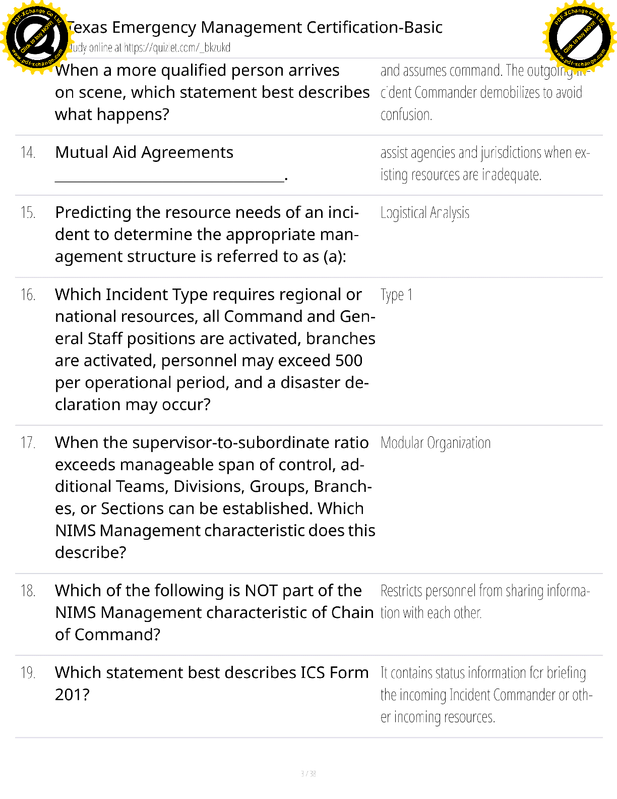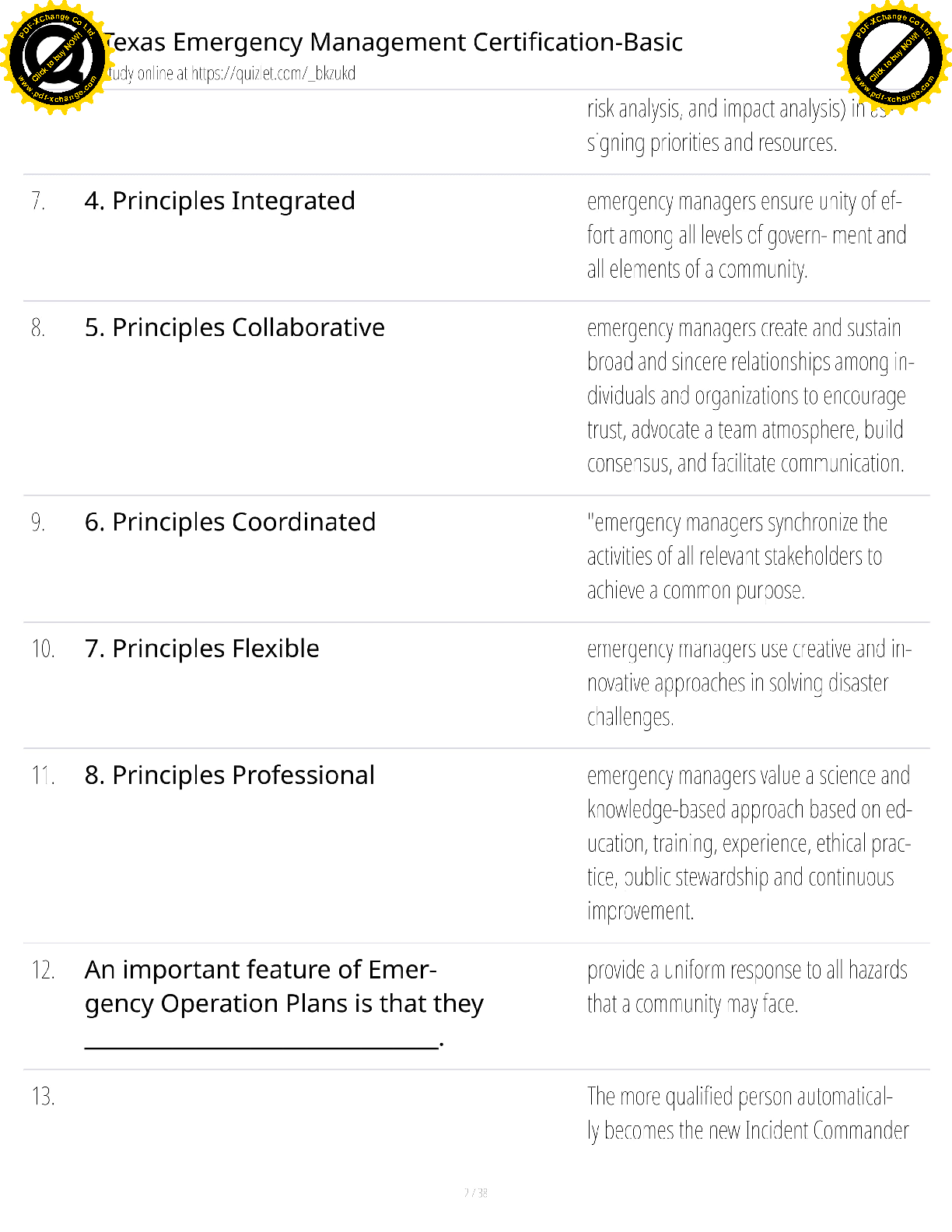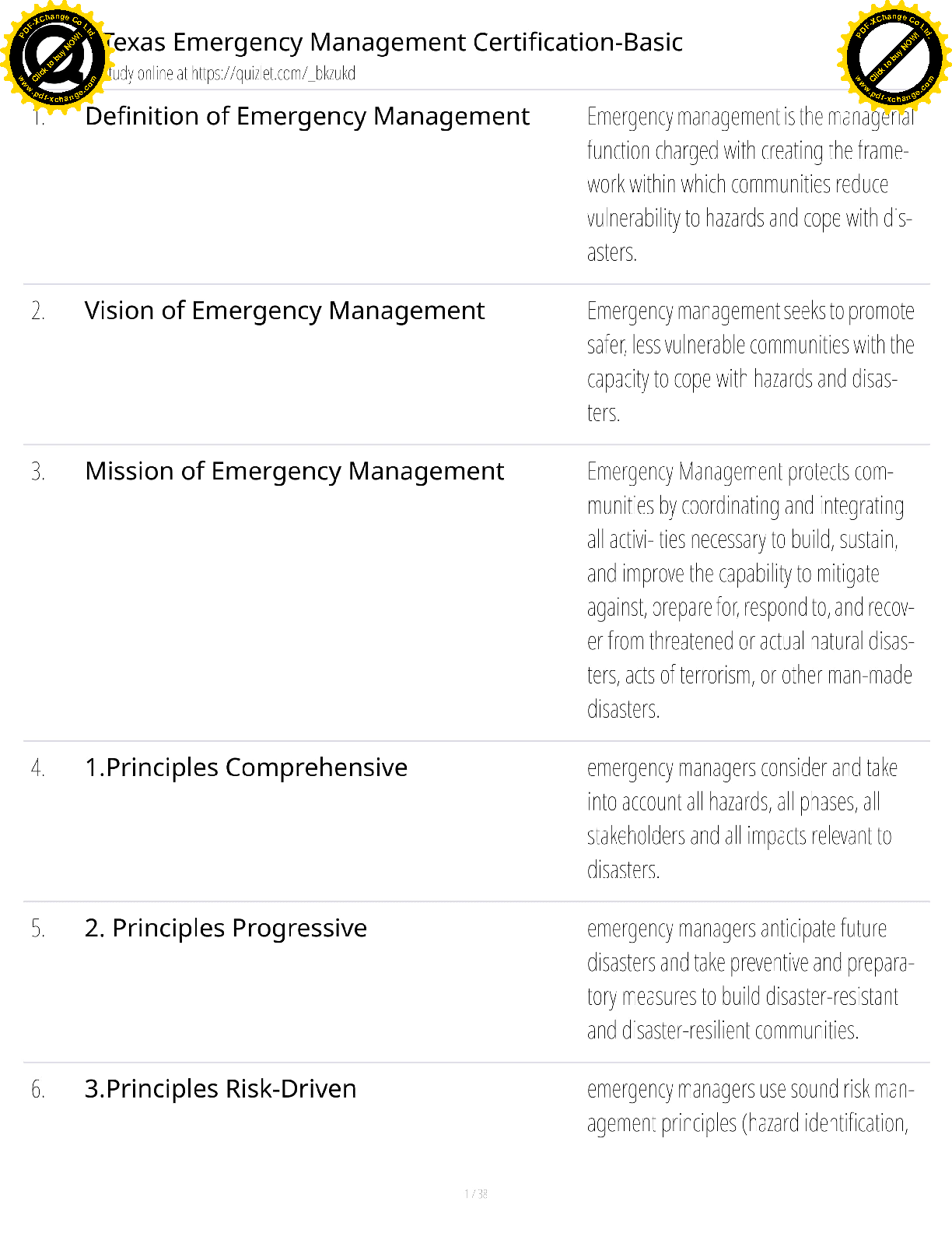 Unlock success in your Texas Emergency Management Certification-Basic exam with our newly updated 2025/2026 study guide. This comprehensive resource breaks down all the essential topics, from the core definition, vision, and mission of emergency management to the fundamental principles that guide disaster response and preparedness. Designed to streamline your learning process, this guide provides clear, concise explanations to help you master the material efficiently. Prepare with confidence and pass your certification on the very first try, eliminating the stress and cost of resits. Get the ultimate tool for acing your exam!