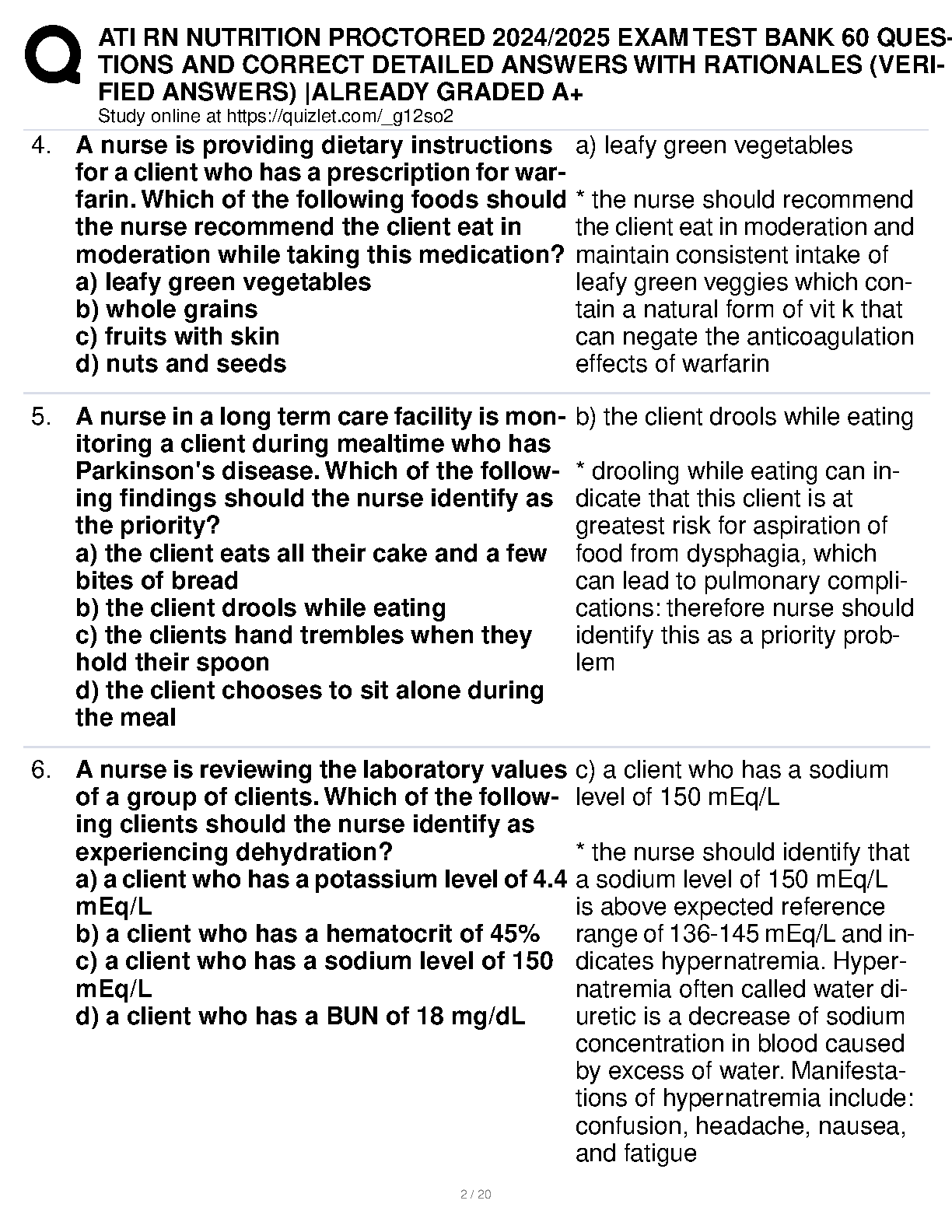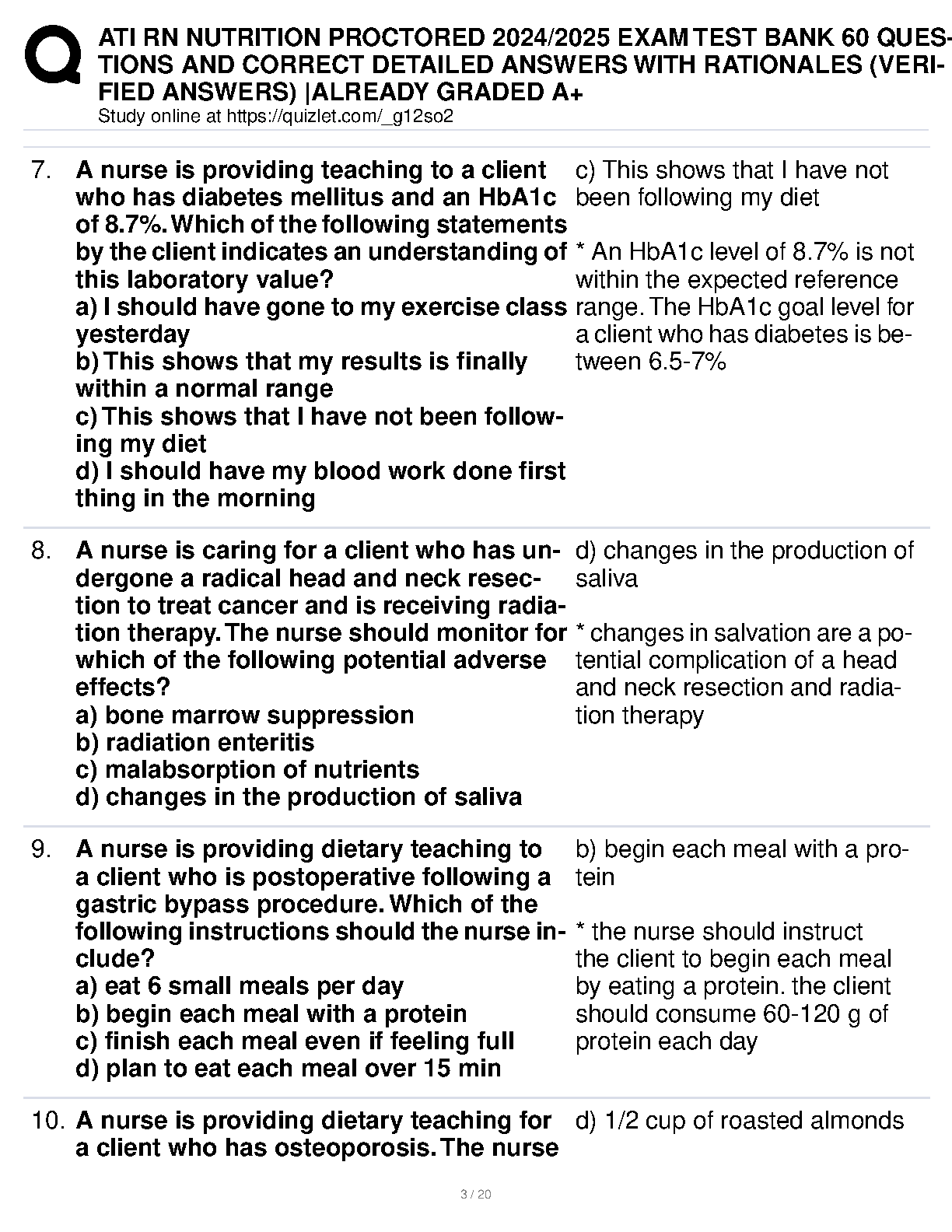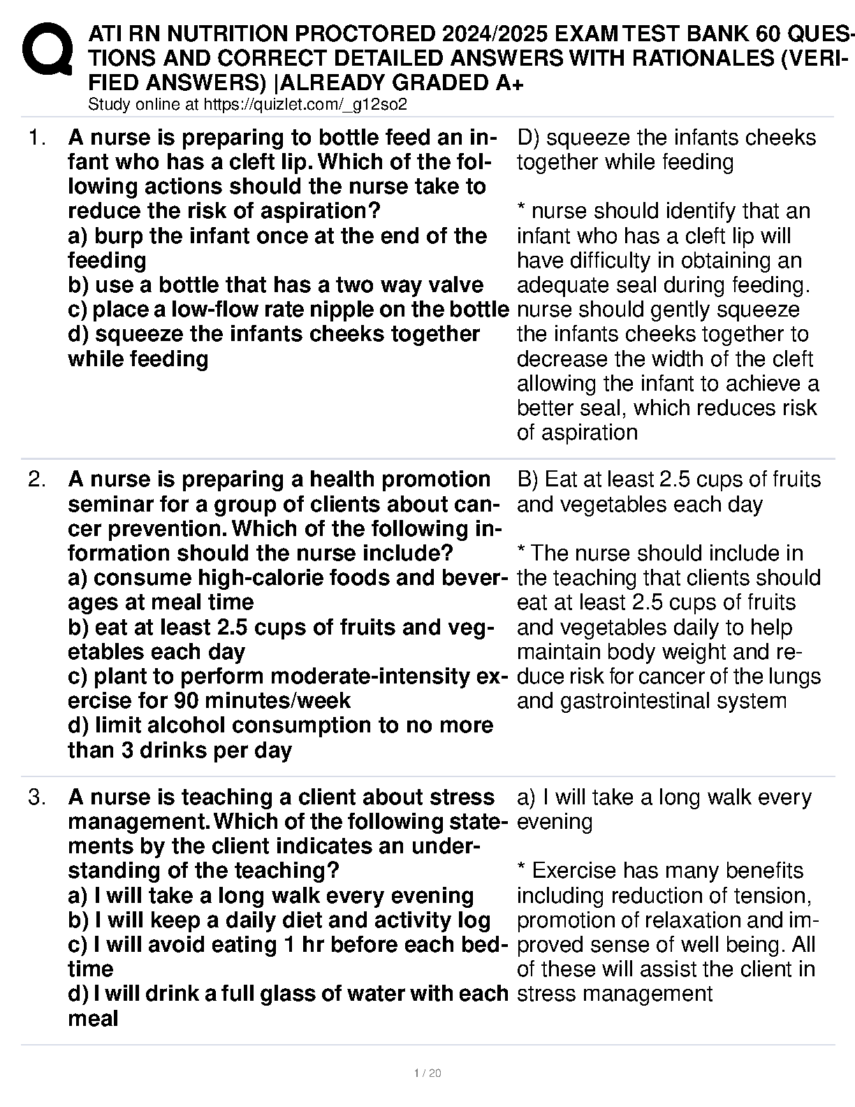 Get ready to ace your nursing exams with our latest 2024-2025 ATI RN Nutrition Proctored Exam Test Bank. This comprehensive resource is expertly designed to help you master key nutrition concepts and pass on your first attempt. It features 60 meticulously crafted questions, complete with correct, verified answers and in-depth rationales for each. This guide is your ultimate tool for achieving an A+ grade and building the confidence needed to excel in your nursing studies and avoid resits.