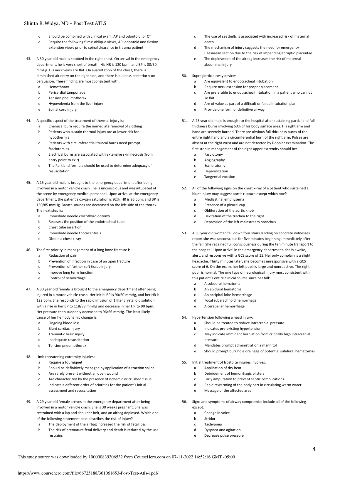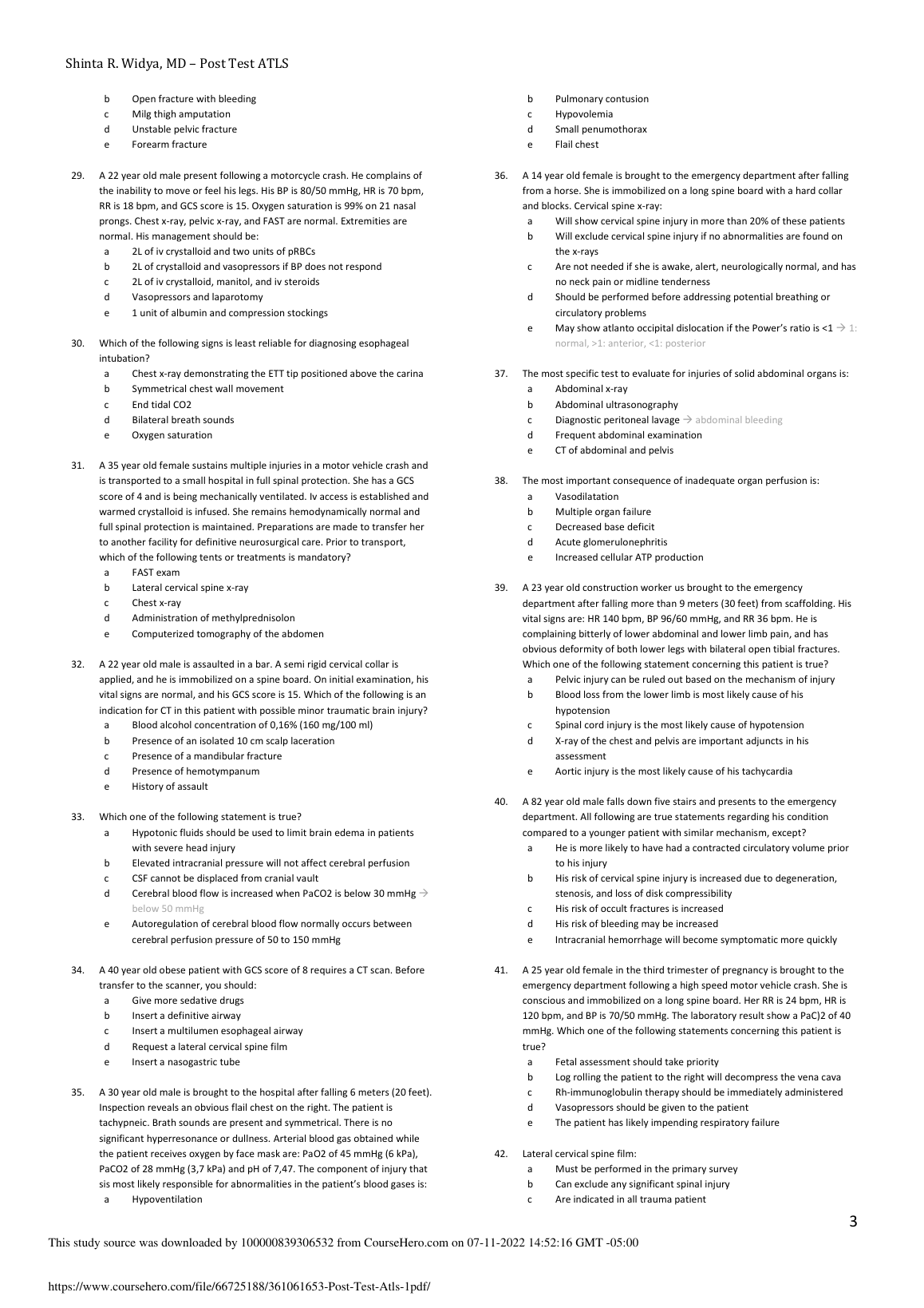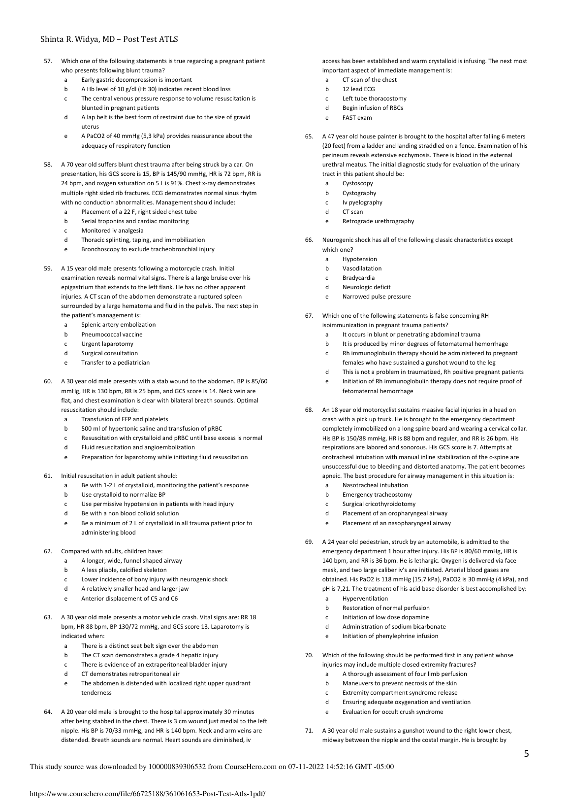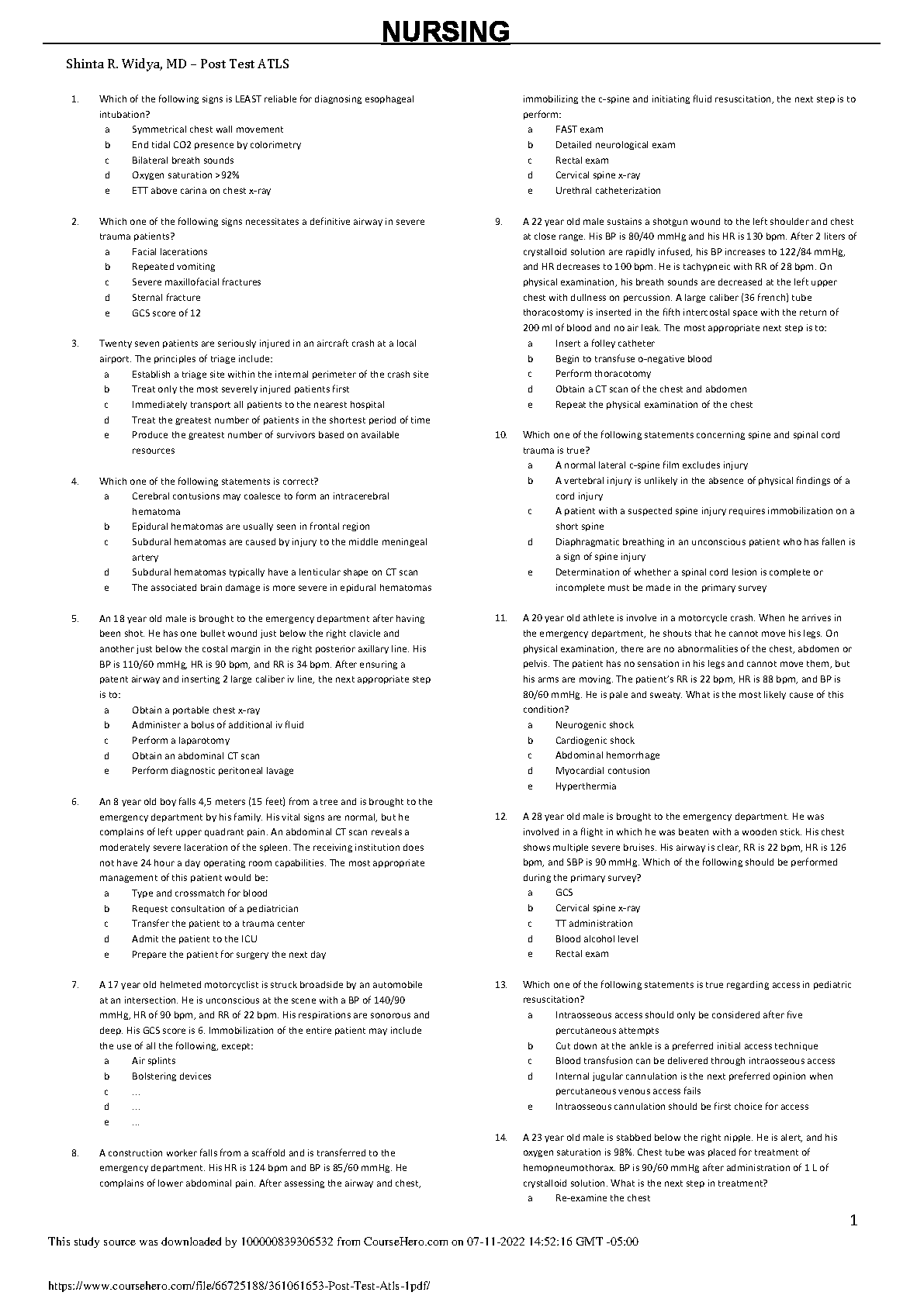 NURSING MD Post Test ATLS Shinta R. Widya. DOWNLOAD on www.hackedexams.com INSTANTLY.