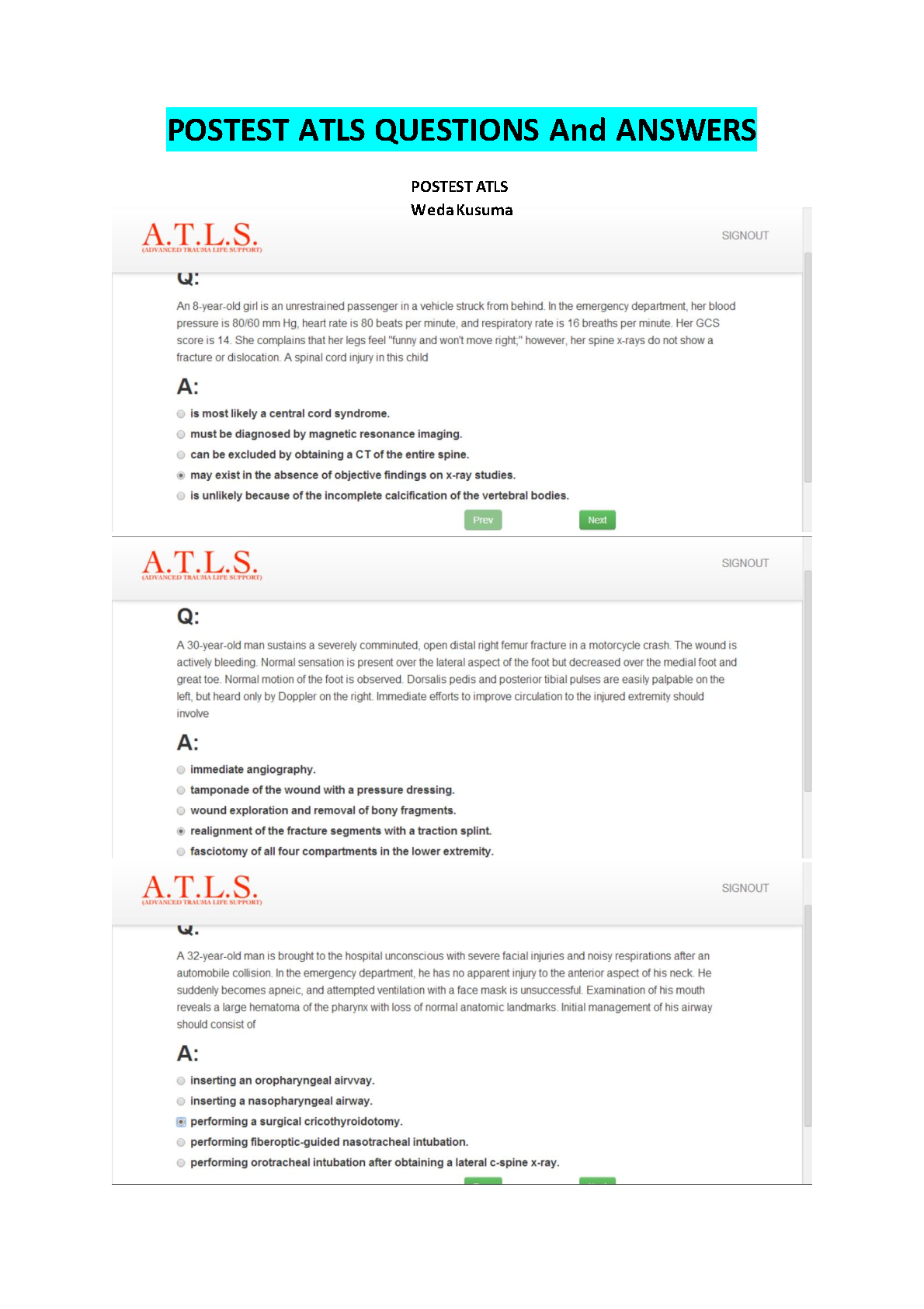 POSTEST ATLS QUESTIONS And ANSWERS (Weda Kusuma) 2023. DOWNLOAD on www.hackedexams.com INSTANTLY.