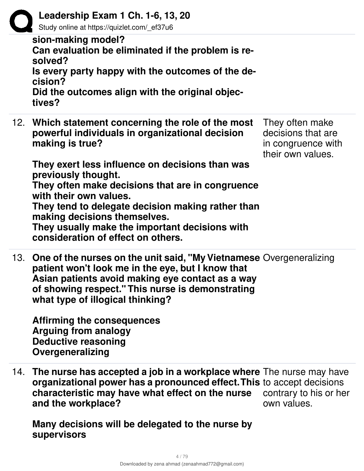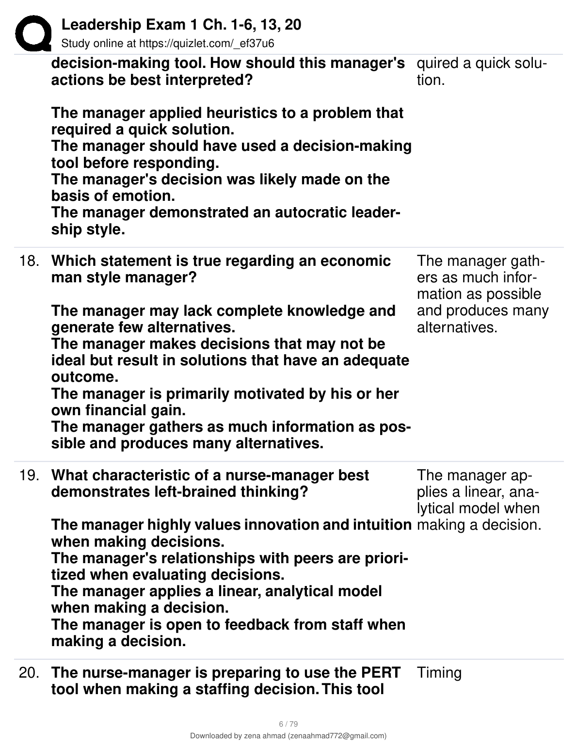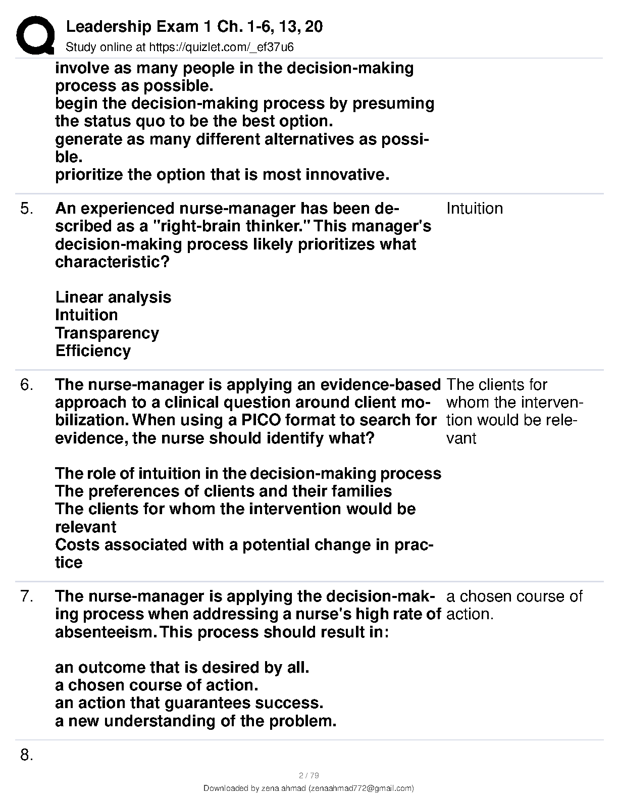 Elevate your study routine and ensure success in your nursing leadership course with the official Test Bank for 'Leadership Roles and Management Functions in Nursing,' 11th Edition by Marquis and Huston. This comprehensive resource is your ultimate tool for exam preparation, featuring a vast array of questions with detailed answers that mirror the actual test format. This guide specifically covers essential topics from Chapters 1 through 6, 13, and 20, focusing on critical skills like clinical decision-making, conflict mediation, and effective management strategies. Download now to gain the confidence you need to pass your exams effortlessly on the first attempt and excel in your nursing career.