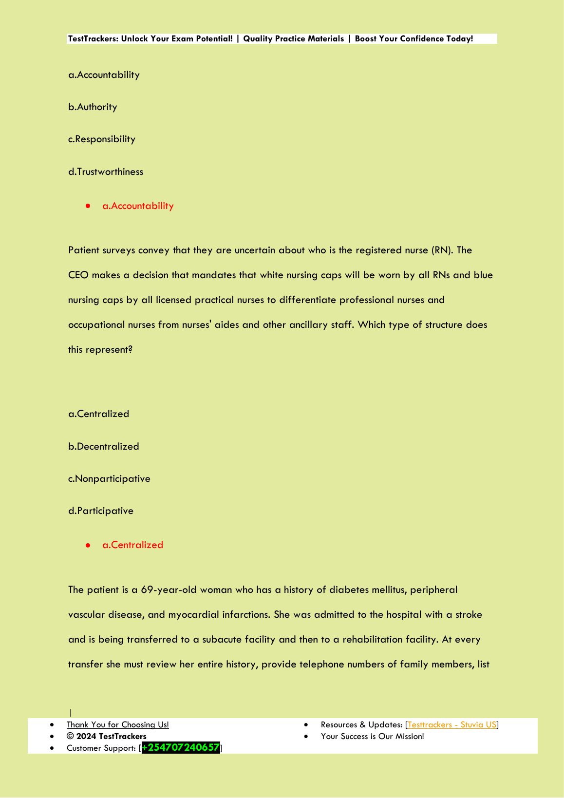Leadership NUR 4590 Exam 2 Test Bank | Questions and Answers | Based on Marquis and Huston, 11th Edition