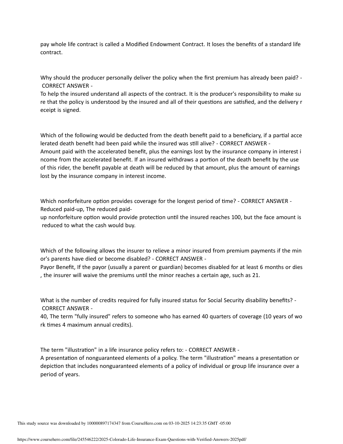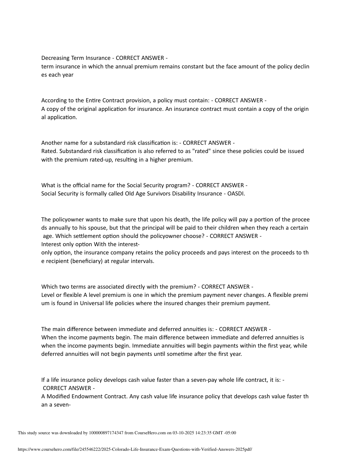 Prepare to pass the 2025 Colorado Life Insurance Exam on your very first try with our definitive test bank. This recently updated study guide for the 2025-2026 testing cycle features a comprehensive collection of potential exam questions, each paired with a 100% correct, verified answer. Master essential terminology and core concepts, from 'Adverse Selection' to 'Policyowner' rights. This resource is expertly designed to help you study efficiently, build confidence, and avoid the hassle of a resit. Download now to secure your path to becoming a licensed agent in Colorado.