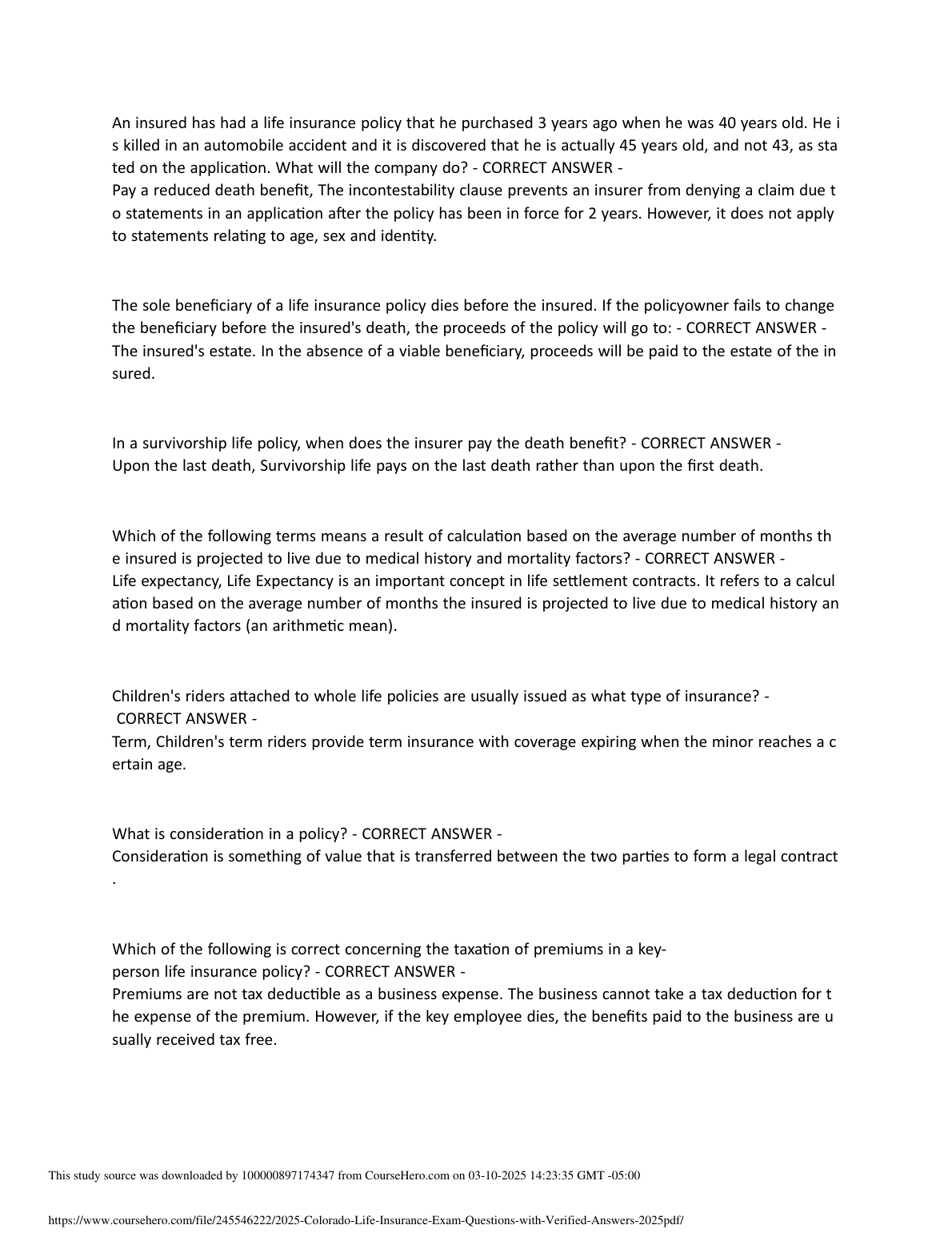 Colorado Life Insurance Exam 2025 Test Bank: Latest Questions & Verified Answers for First-Time Success