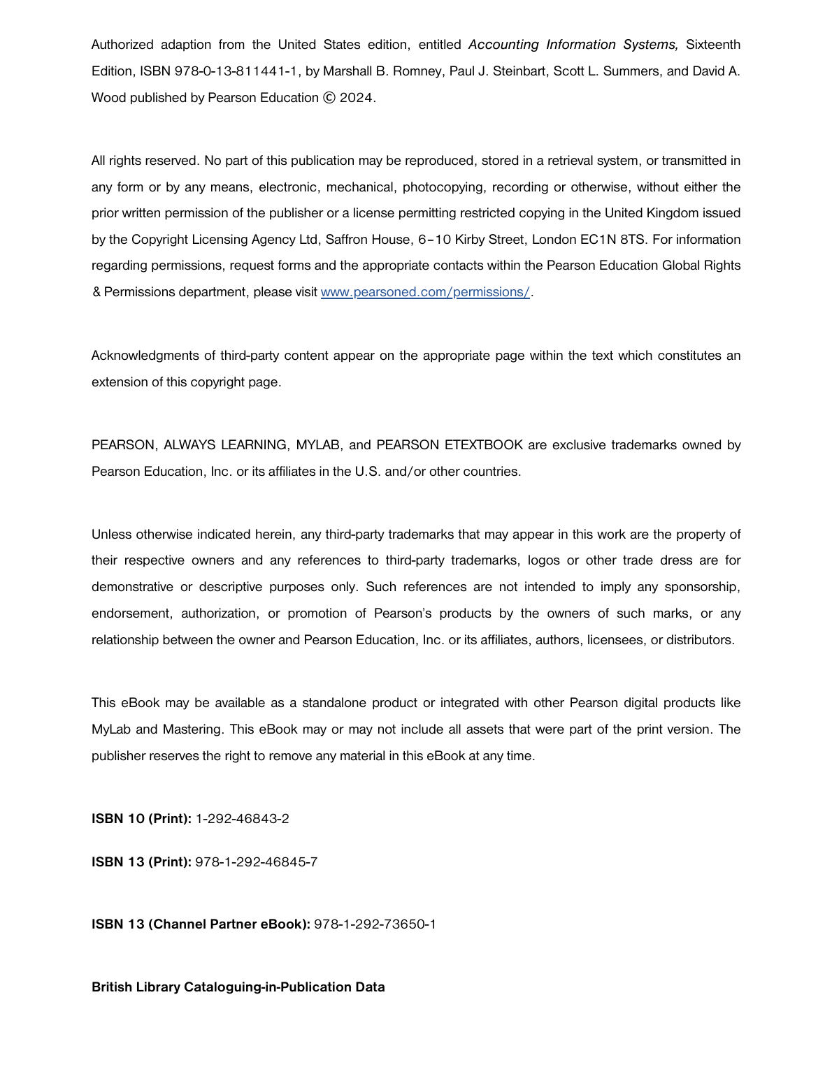 Test Bank for Accounting Information Systems, 16th Global Edition by Marshall B. Romney, Paul J. Steinbart, Scott L. Summers, David A. Wood