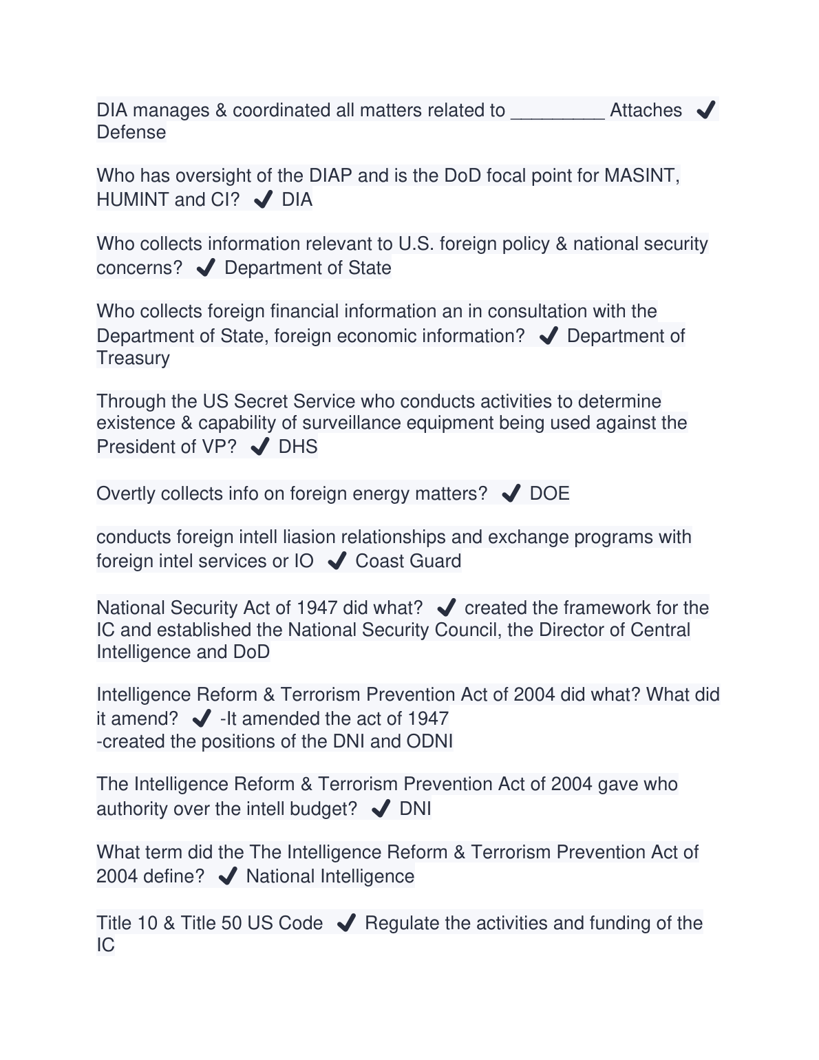 Ace your Counterintelligence and Defense All-Source Analysis (CDASA) 2024 certification with this comprehensive test bank. Our meticulously compiled resource features a full range of potential exam questions, each paired with a verified, accurate solution. Master key concepts related to the roles and responsibilities of the ODNI, FBI, CIA, SecDef, and other intelligence community elements. This study guide covers critical topics such as clandestine collection, counterintelligence (CI) activities, the National Intelligence Program (NIP), and the Military Intelligence Program (MIP). Prepare effectively and confidently pass your CDASA 2024 exam on your first attempt with our trusted review materials.
