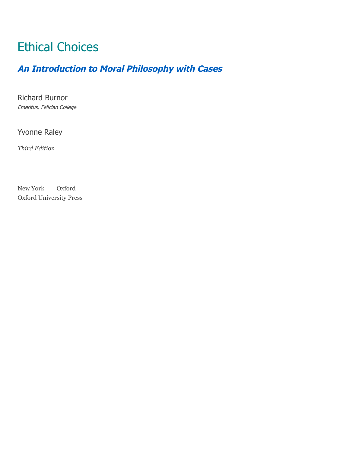 Test Bank for Ethical Choices: An Introduction to Moral Philosophy with Cases, 3rd Edition by Richard Burnor, Yvonne Raley