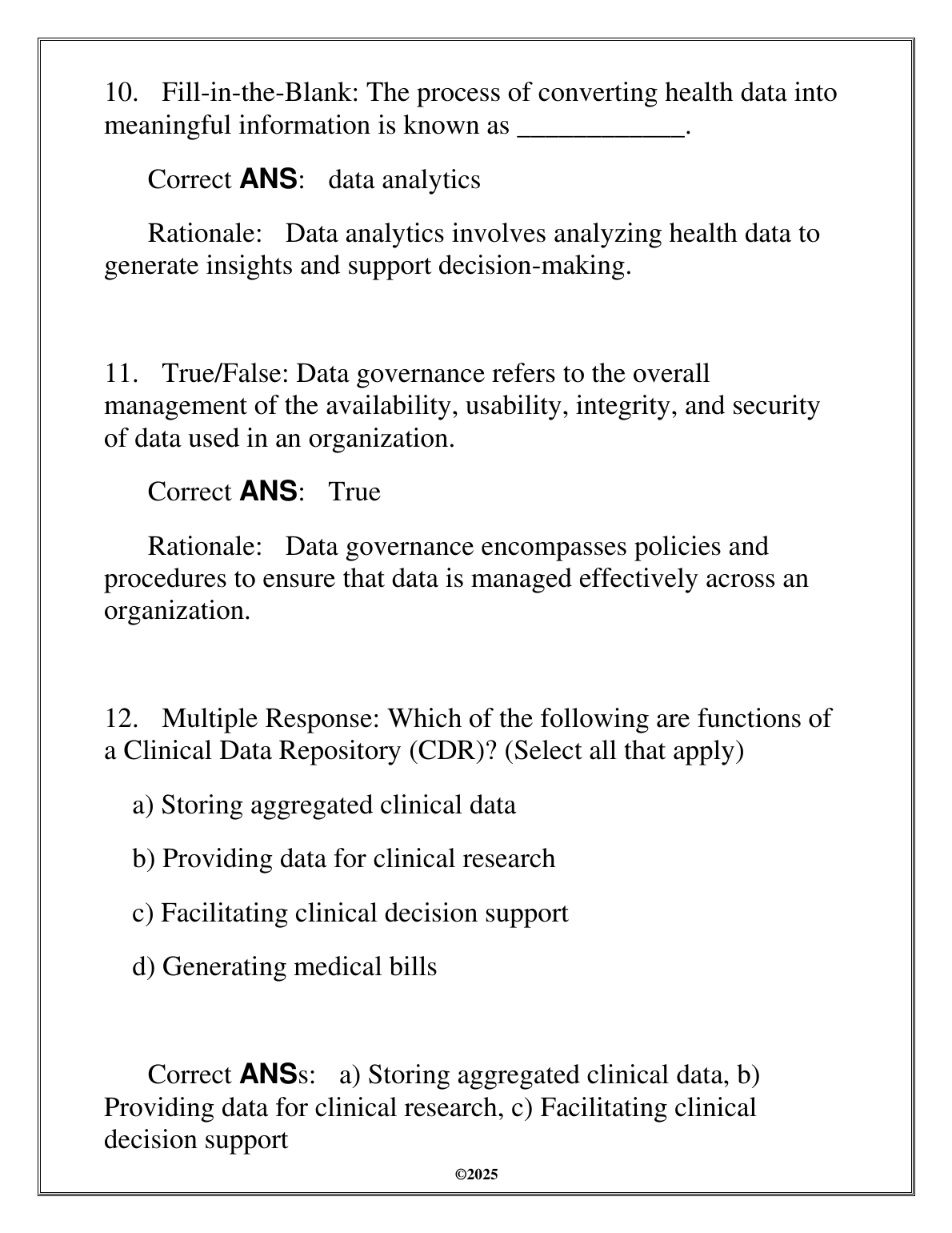 WGU C802 / HLTH 3501 Foundations in HIM Test Bank: 2025 FA Exam Review with 100% Correct Q&A