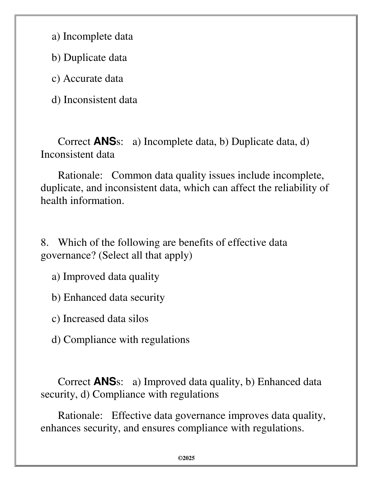 Achieve top scores in your WGU C803 HLTH 3315 course with our latest 2025 FA Test Review. This comprehensive test bank is your key to mastering Data Analytics & Information Governance, providing a full suite of exam-style questions and verified answers. Designed specifically for the 2025/2026 academic year, this study guide helps you understand complex topics, prepare efficiently, and pass your exam on the first attempt, eliminating the need for costly resits. Get instant access to the essential Q&A you need for success.