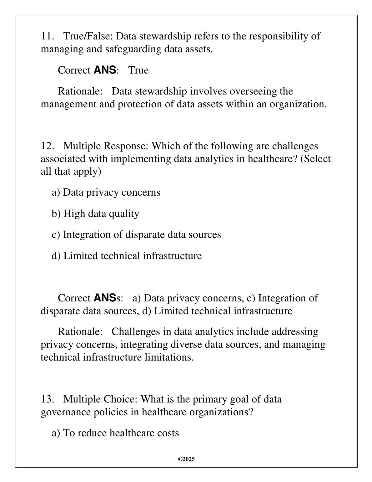 WGU C803 HLTH 3315 Data Analytics & Information Governance Test Bank | 2025 FA Test Review with Q&A for First-Attempt Success