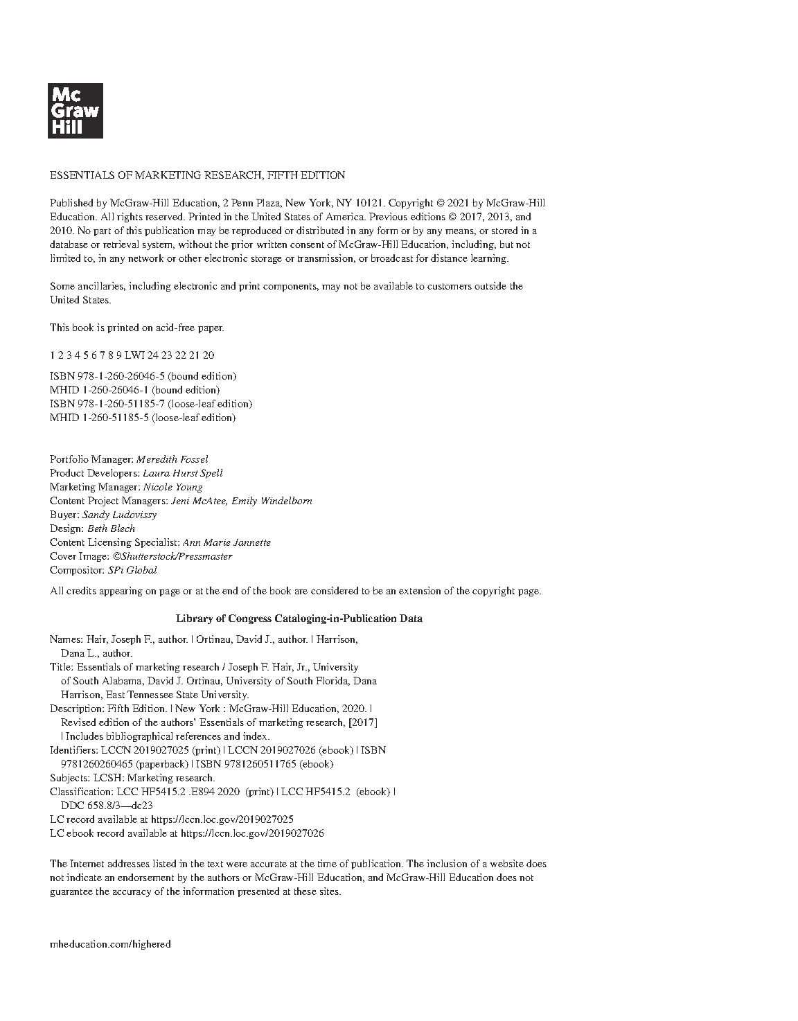 Official Test Bank for Essentials of Marketing Research, 5th Edition by Joseph F. Hair, Jr., David J. Ortinau, and Dana E. Harrison