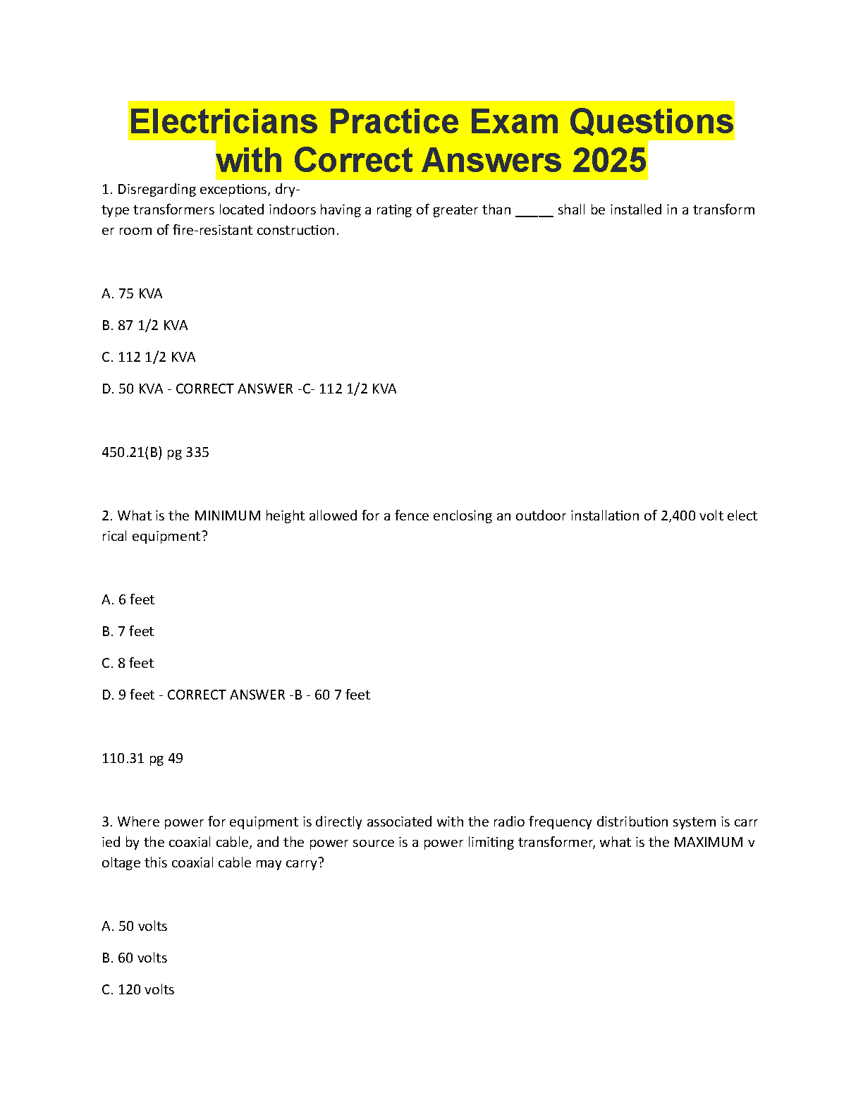Electrician Exam 2025-2026 Test Bank: Updated Practice Questions & Answers to Pass on Your First Try