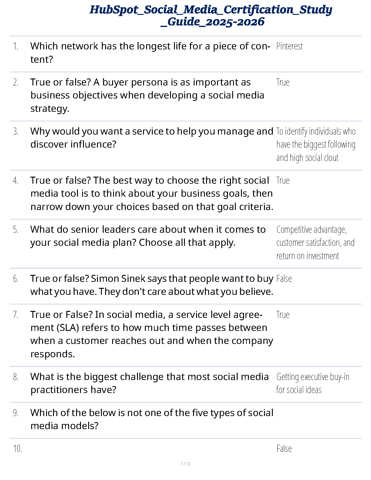 Ace your HubSpot Social Media Certification exam with our latest, all-inclusive test bank for 2025-2026. This expertly crafted study guide provides a complete collection of real exam questions and verified answers, covering all essential topics from strategy and buyer personas to analytics and ROI. Designed to help you prepare effectively and pass on your very first try, this resource is your key to avoiding resits and mastering social media marketing. Download now to secure your certification with confidence!