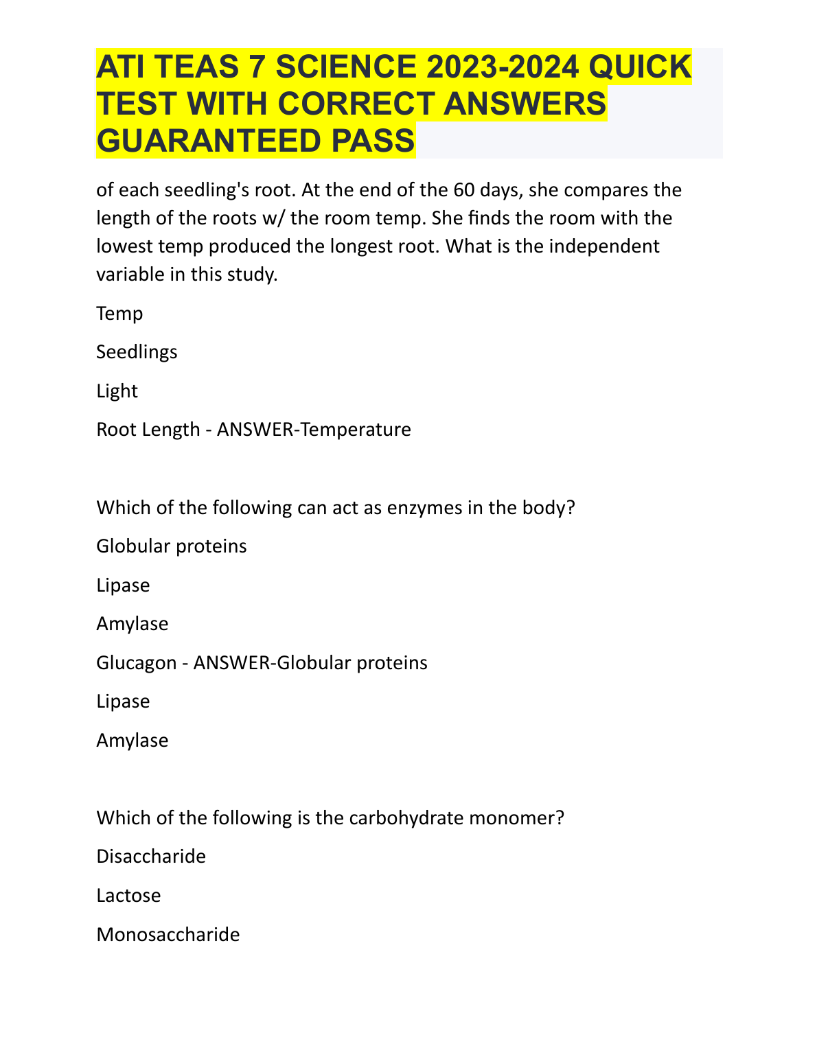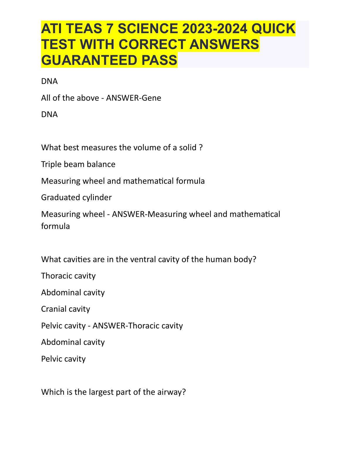 Comprehensive Test Bank for ATI TEAS 7 Science (2025-2026 Edition) by Assessment Technologies Institute - Verified Questions & Answers for First-Try Success