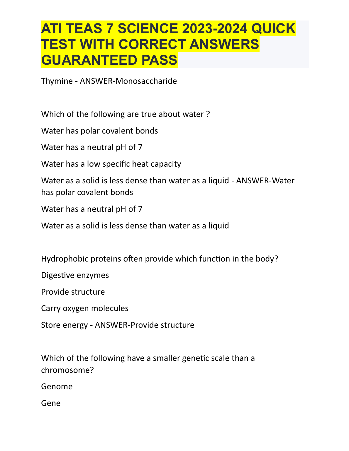 Unlock your potential and ace the ATI TEAS 7 Science exam on your first attempt with our latest 2025-2026 test bank. This comprehensive resource is packed with a wide range of practice questions and meticulously verified answers, mirroring the actual exam format. Designed by Assessment Technologies Institute (ATI) to boost your confidence and deepen your understanding of key scientific concepts, this guide is your ultimate tool to study efficiently, overcome challenging topics, and secure a top score. Say goodbye to exam anxiety and resits – get the definitive preparation material today!