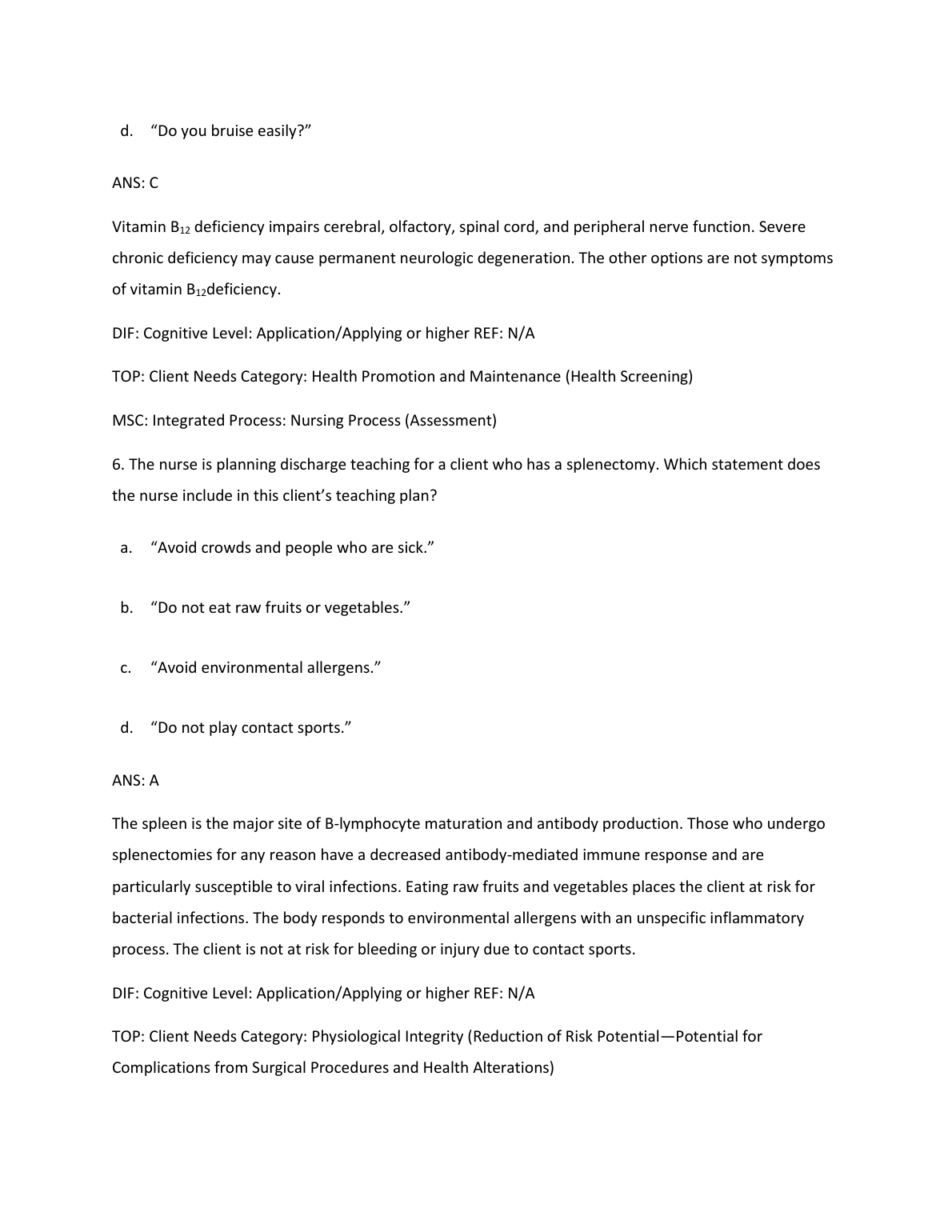 Lewis's Medical-Surgical Nursing, 12th Edition by Harding, Kwong, Roberts, Reinisch & Hagler - Hematologic System Test Bank