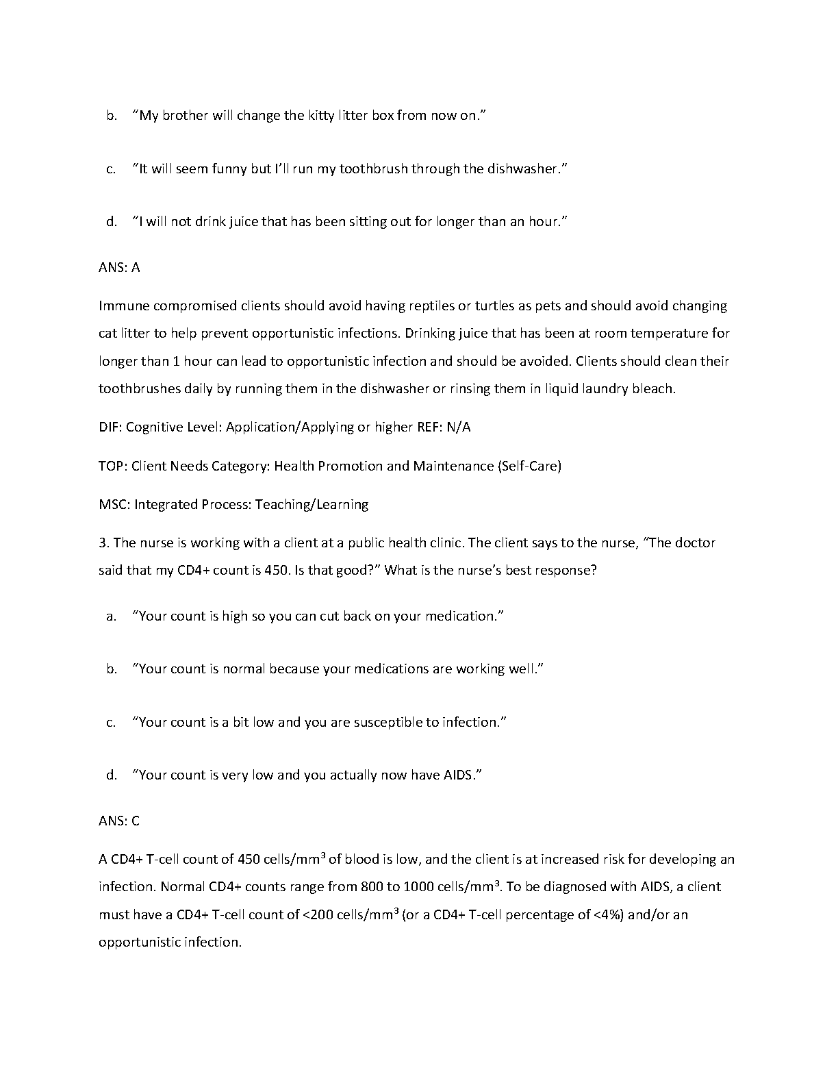 Medical-Surgical Nursing, 10th Edition by Ignatavicius, Workman & Rebar: Test Bank for HIV and Immune Deficiencies Chapter