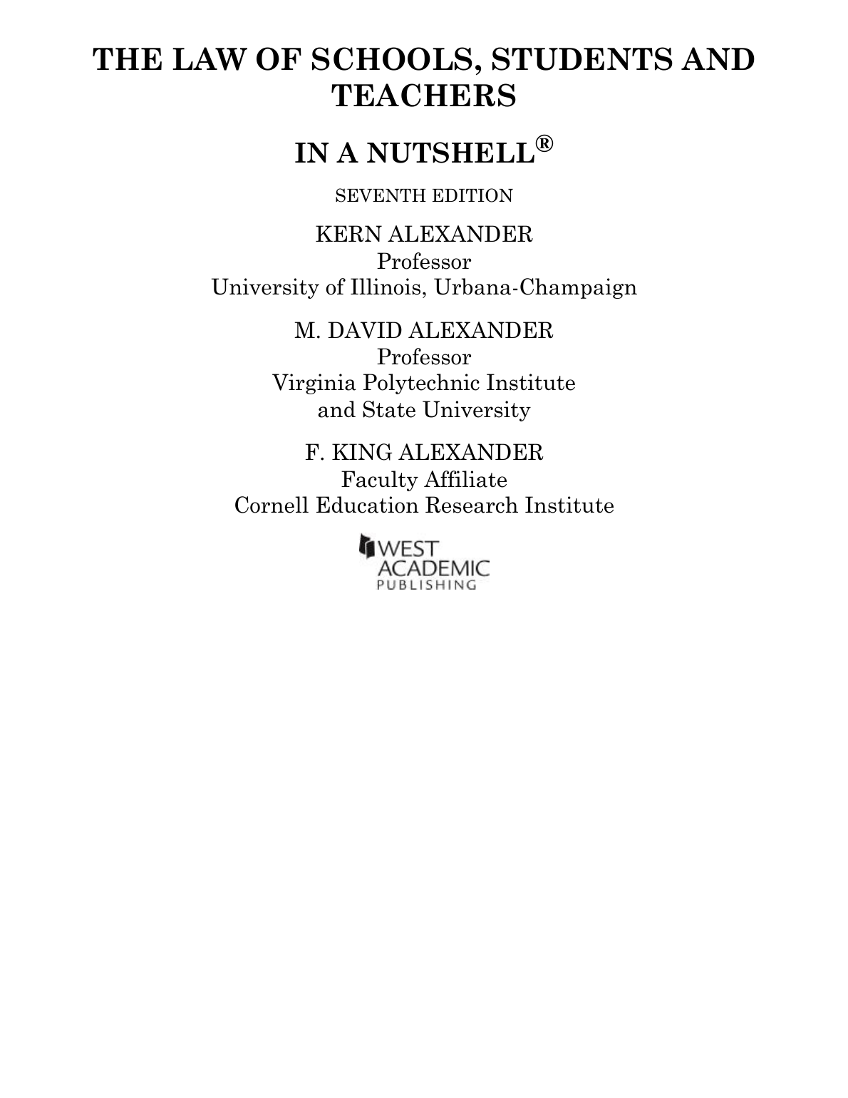 The Law of Schools, Students and Teachers, 7th Edition by Kern Alexander, M. David Alexander, and F. King Alexander - Updated 2025/2026 Exam Prep Guide