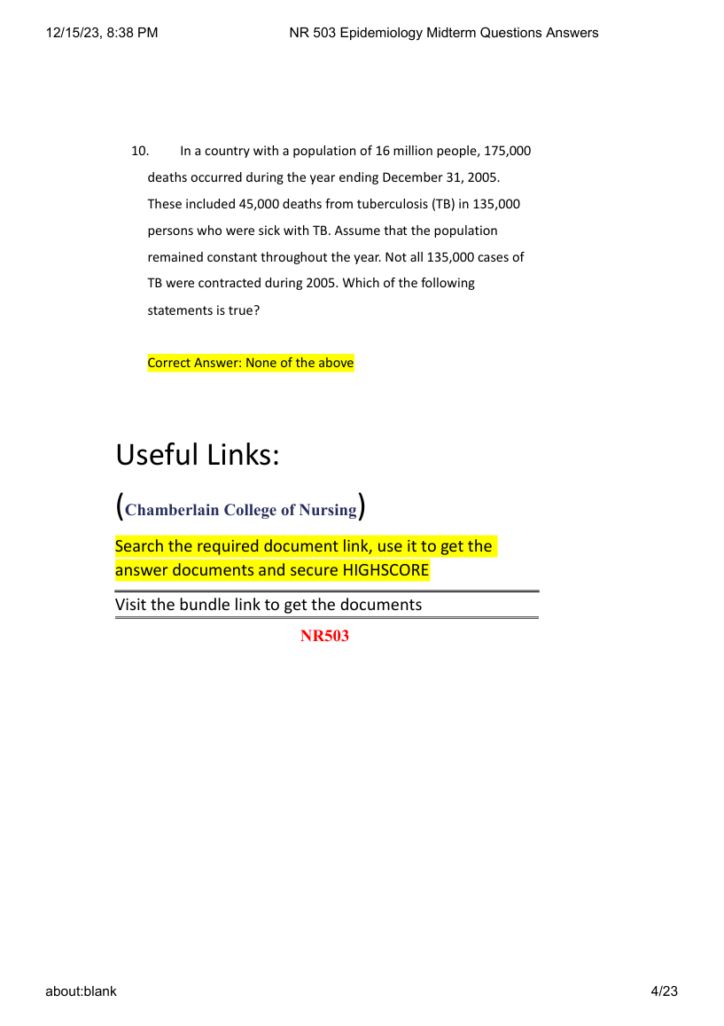 Ace your NR 503 Epidemiology midterm with this comprehensive test bank! Based on the 3rd Edition of 'Epidemiology for Advanced Nursing Practice' by Friis and Sellers, this resource provides a complete set of questions with detailed, verified answers. It covers all essential topics you'll face on your exam, helping you to study effectively, master complex concepts, and pass with confidence on your first attempt. This is the ultimate study tool to ensure your success in NR 503.