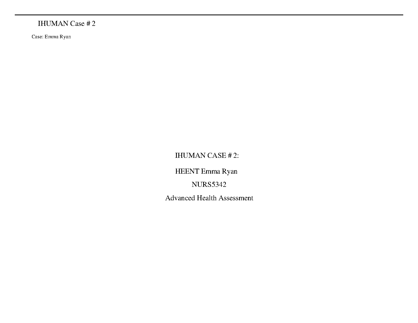 IHUMAN CASE # 2: HEENT Emma Ryan NURS5342 Advanced Health Assessment. BRAND NEW 2023!!!