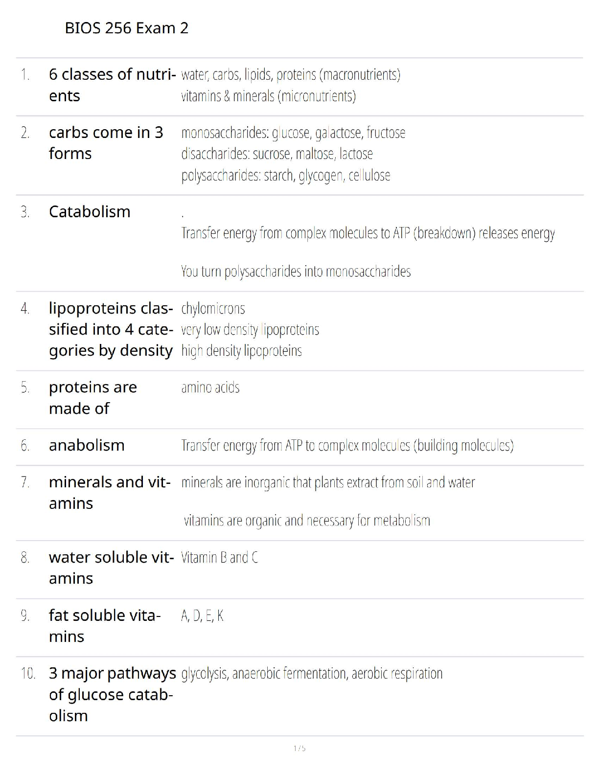 Struggling with BIOS 256? Prepare to conquer your Exam 2 with our comprehensive study guide, fully updated for the 2025/2026 academic year. This essential resource provides detailed, easy-to-understand answers on all critical topics, including the 6 classes of nutrients, the breakdown of carbohydrates, the processes of catabolism and anabolism, lipoprotein classifications, and the pathways of glucose metabolism. Master the differences between water-soluble and fat-soluble vitamins and solidify your understanding of core metabolic concepts. Designed specifically to help you avoid resits, this guide simplifies complex topics, ensuring you have the knowledge and confidence to pass your exam on the very first attempt. Download now and take the first step towards academic success in BIOS 256!