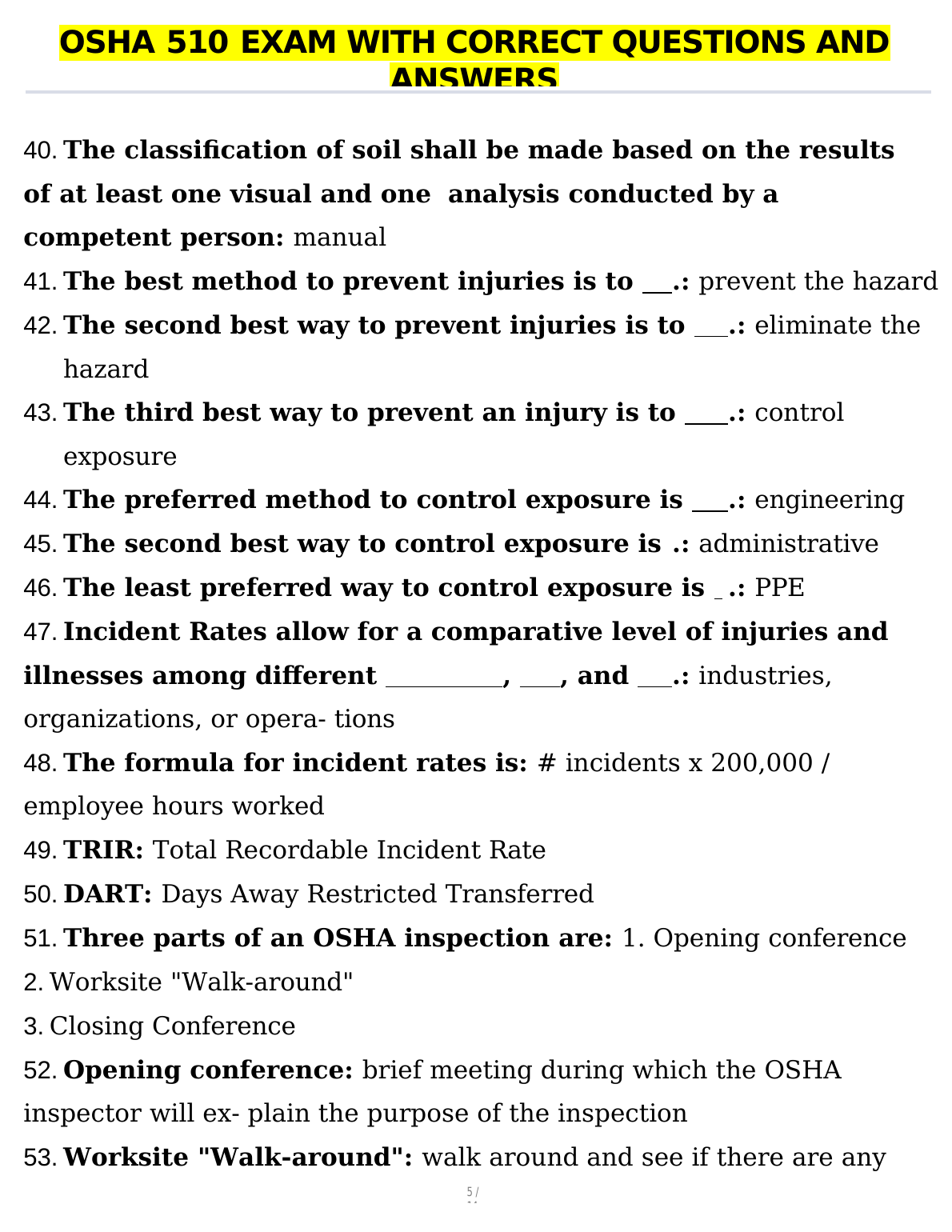OSHA 510 Test Bank: Latest 2025/2026 Exam Questions and Answers for First-Attempt Success