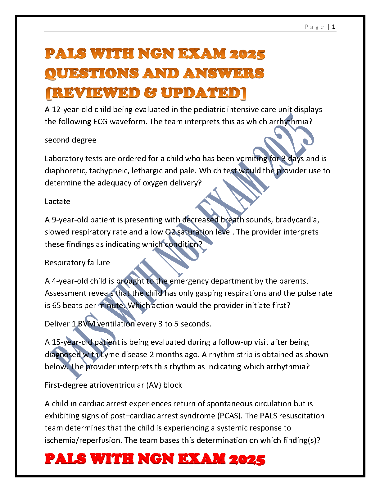 PALS with NGN Test Bank 2025: Comprehensive Questions & Verified Answers for First-Time Pass