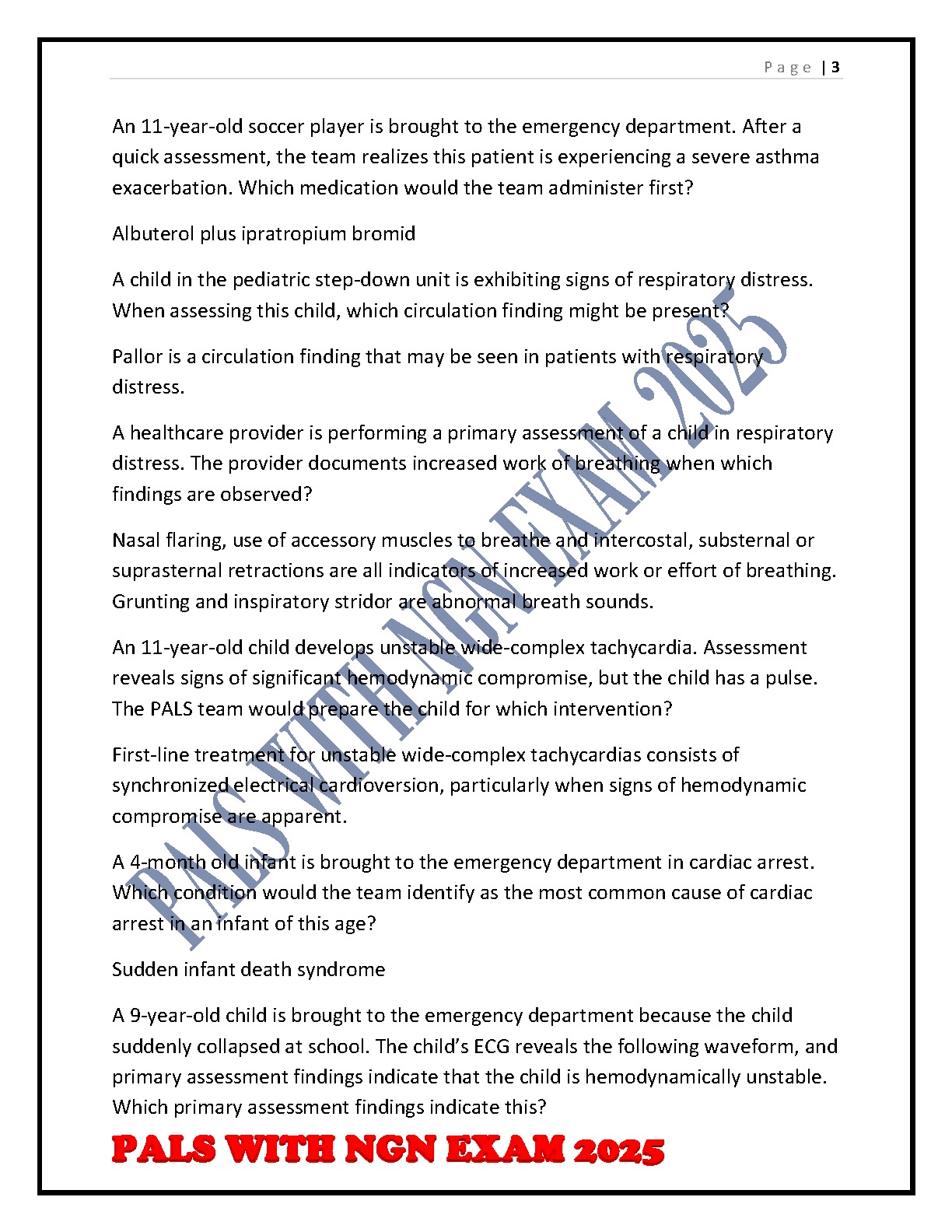 Ace your Pediatric Advanced Life Support (PALS) certification with our latest 2025 test bank, specifically designed with Next Generation (NGN) style questions. This comprehensive resource is packed with a wide range of questions and detailed, verified answers covering critical PALS scenarios. Reviewed and updated for the 2025/2026 academic year, this study guide provides the essential practice you need to master complex pediatric emergencies. Prepare effectively, build your confidence, and ensure you pass your PALS exam on the very first attempt. Avoid resits and get certified faster with this indispensable tool.