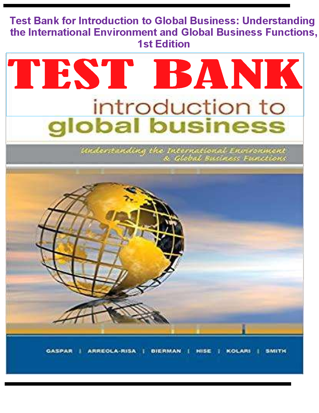 Test Bank for Introduction to Global Business: Understanding the International Environment and Global Business Functions, 1st Edition by Julian E. Gaspar, James Kolari, Richard L. Hise, Leonard Bierman, L. Murphy Smith, Antonio Arreola-Risa