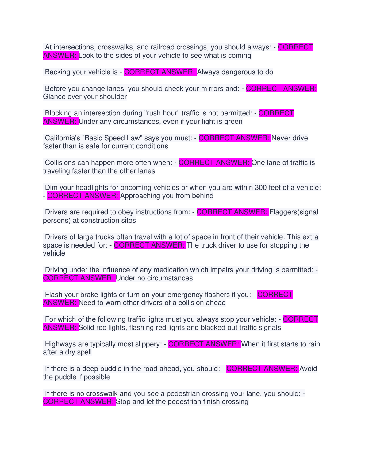 Ace your California DMV written test on the very first attempt with our ultimate 2025-2026 study guide! This comprehensive resource is packed with the latest questions and 100% verified correct answers, covering all critical topics from traffic laws and road signs to safe driving practices. Stop worrying about resits and start studying smart. Our easy-to-follow Q&A format ensures you master the material quickly and confidently, guaranteeing your success in obtaining your driver's license.