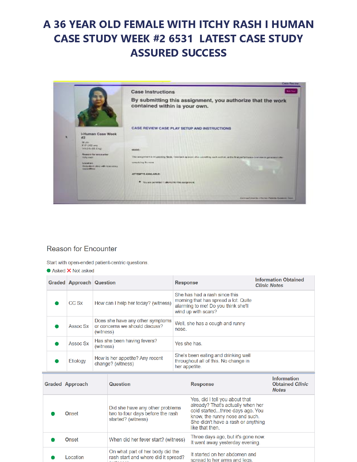 iHuman Case Study 6531 Week #2: 36-Year-Old Female with Itchy Rash | Updated 2025/2026 Pass-Assured Guide