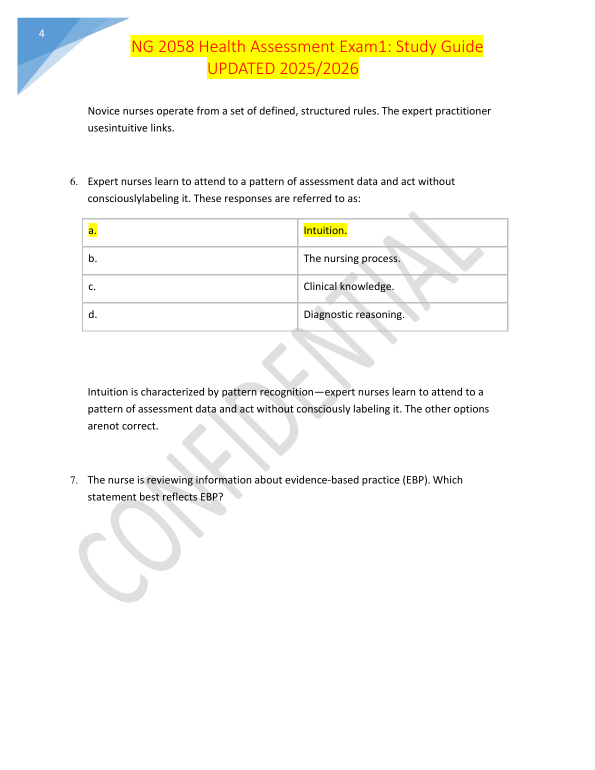 Ace your NG 2058 Health Assessment Exam 1 on the first try with this comprehensive test bank. Meticulously aligned with 'Jarvis's Physical Examination and Health Assessment, 9th Edition' by Carolyn Jarvis, Ann L. Eckhardt, and Gerene S. Bauldoff, this resource features a vast collection of exam-style questions with verified answers and detailed rationales. This updated 2025/2026 study guide is expertly designed to help you grasp key concepts, practice critical thinking, and build the confidence needed to excel in your exam and avoid resits. Get instant access to the tools you need for success.