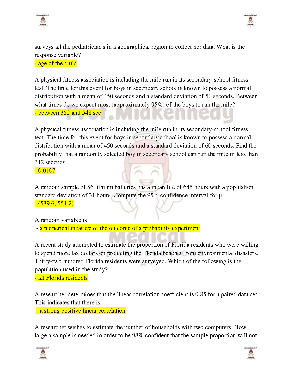 Verified MATH 225N Statistics Final Exam Test Bank with Complete Questions & Correct Answers