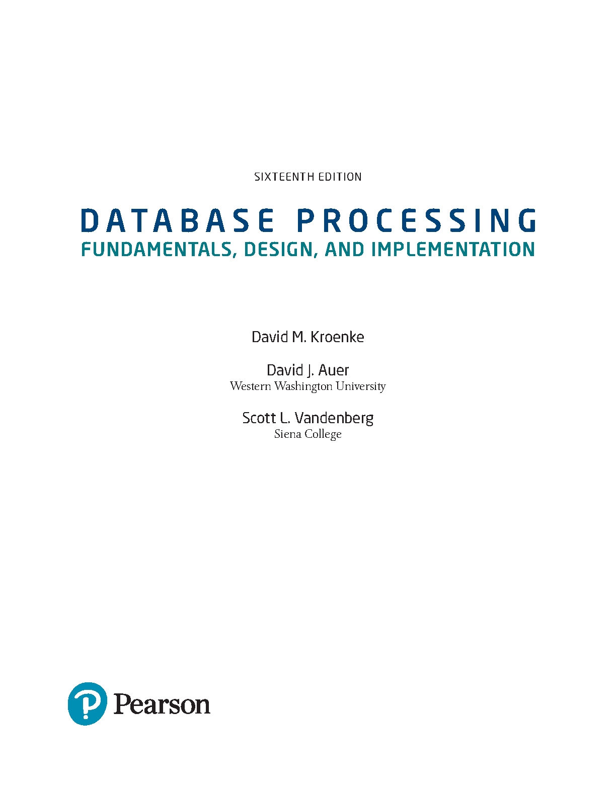 Test Bank for Database Processing: Fundamentals, Design, and Implementation, 16th Edition by David M. Kroenke, David J. Auer, Scott L. Vandenberg