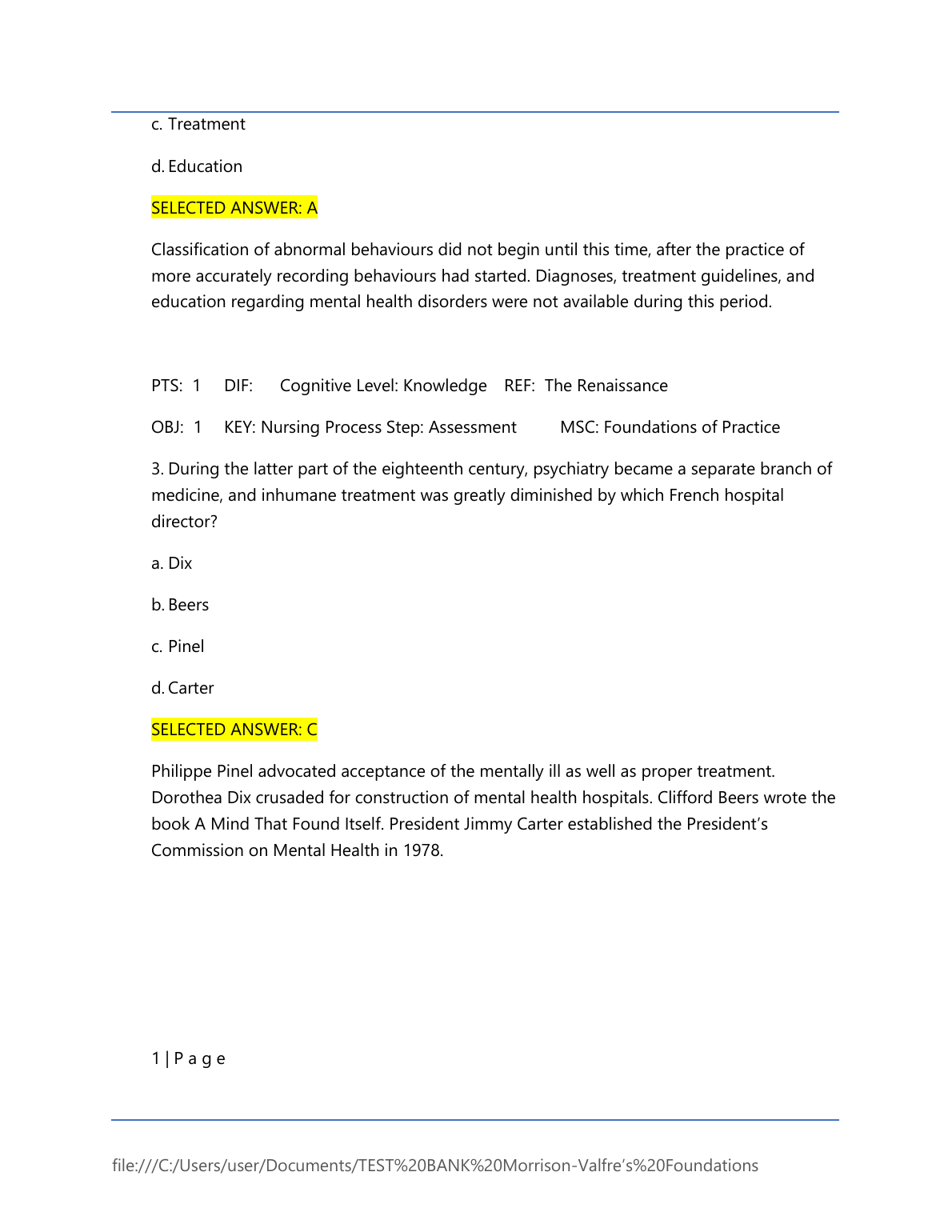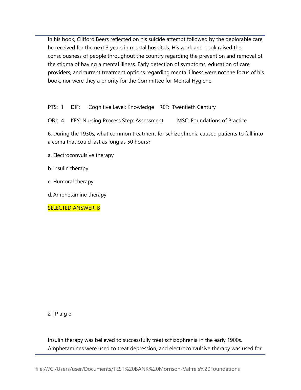 Test Bank for Morrison-Valfre's Foundations of Mental Health Care in Canada, 1st Edition by Boris Bard, Eric MacMullin, and Jacqueline Williamson