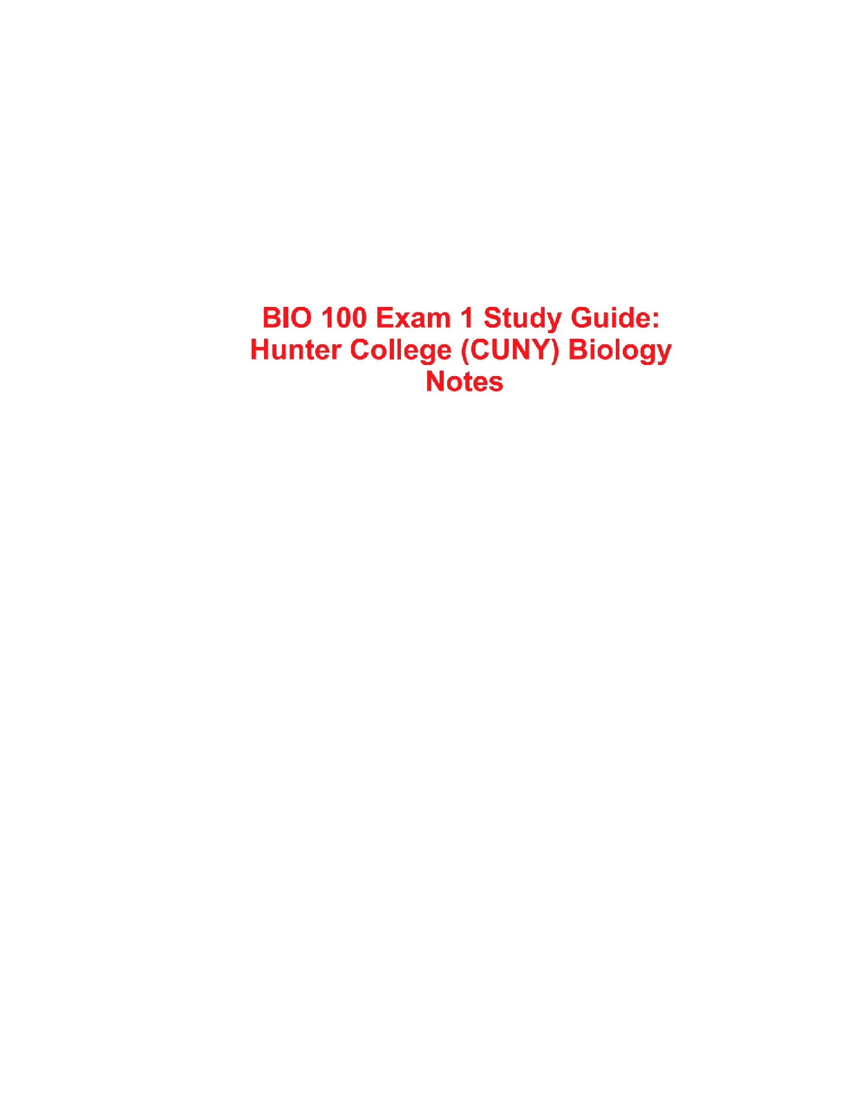 BIO 100 Hunter College Exam 1 Study Guide | Latest 2025/2026 Edition | Ace Your CUNY Biology Test First Try