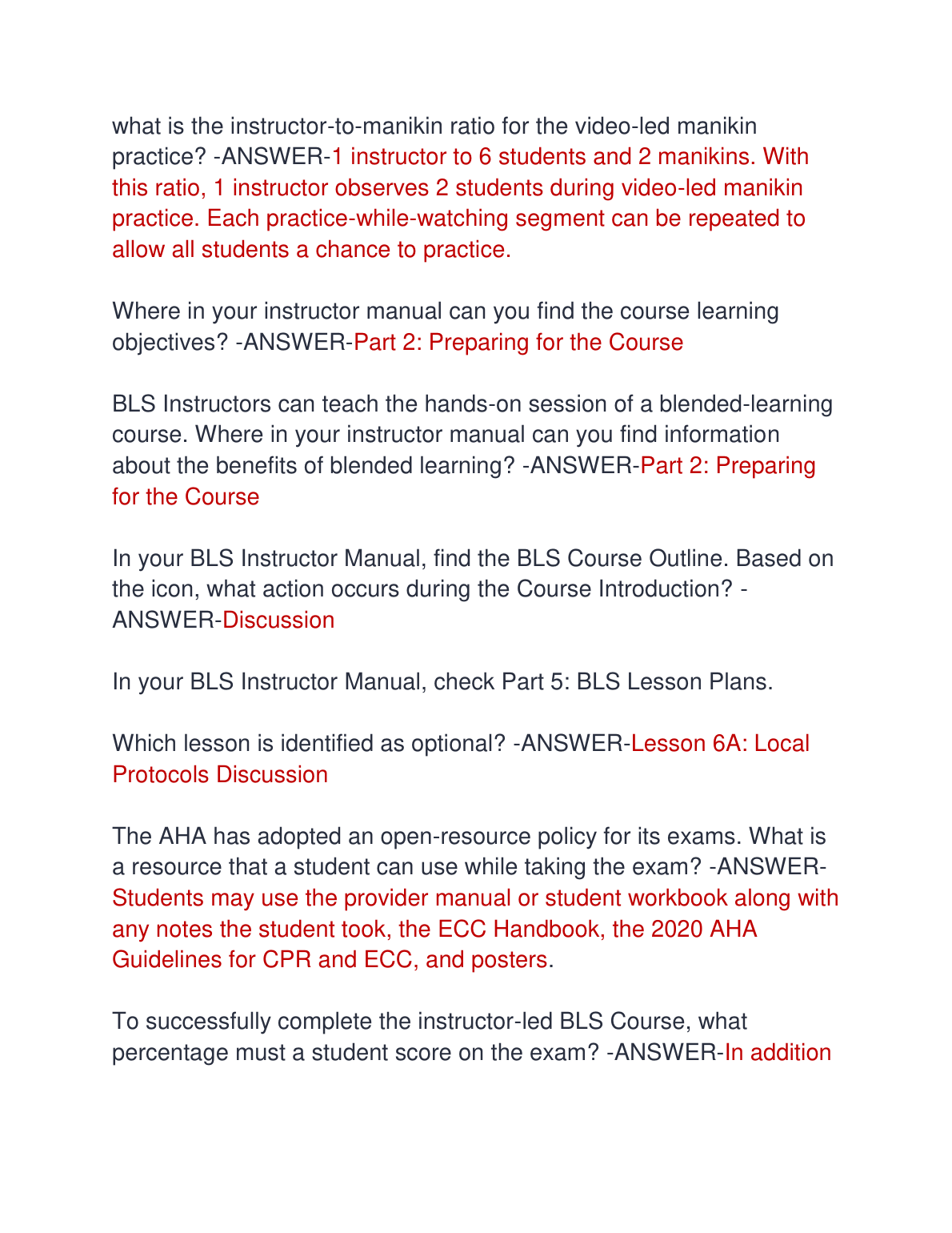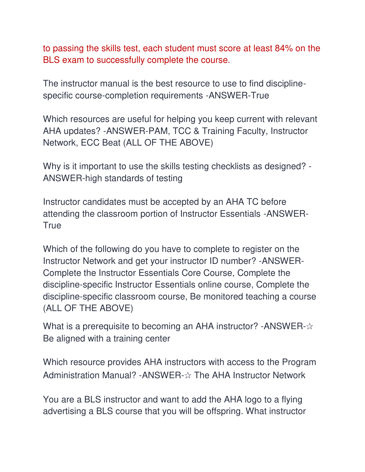 American Heart Association (AHA) BLS Instructor Essentials 2025 Test Bank: Verified Questions & A+ Graded Answers