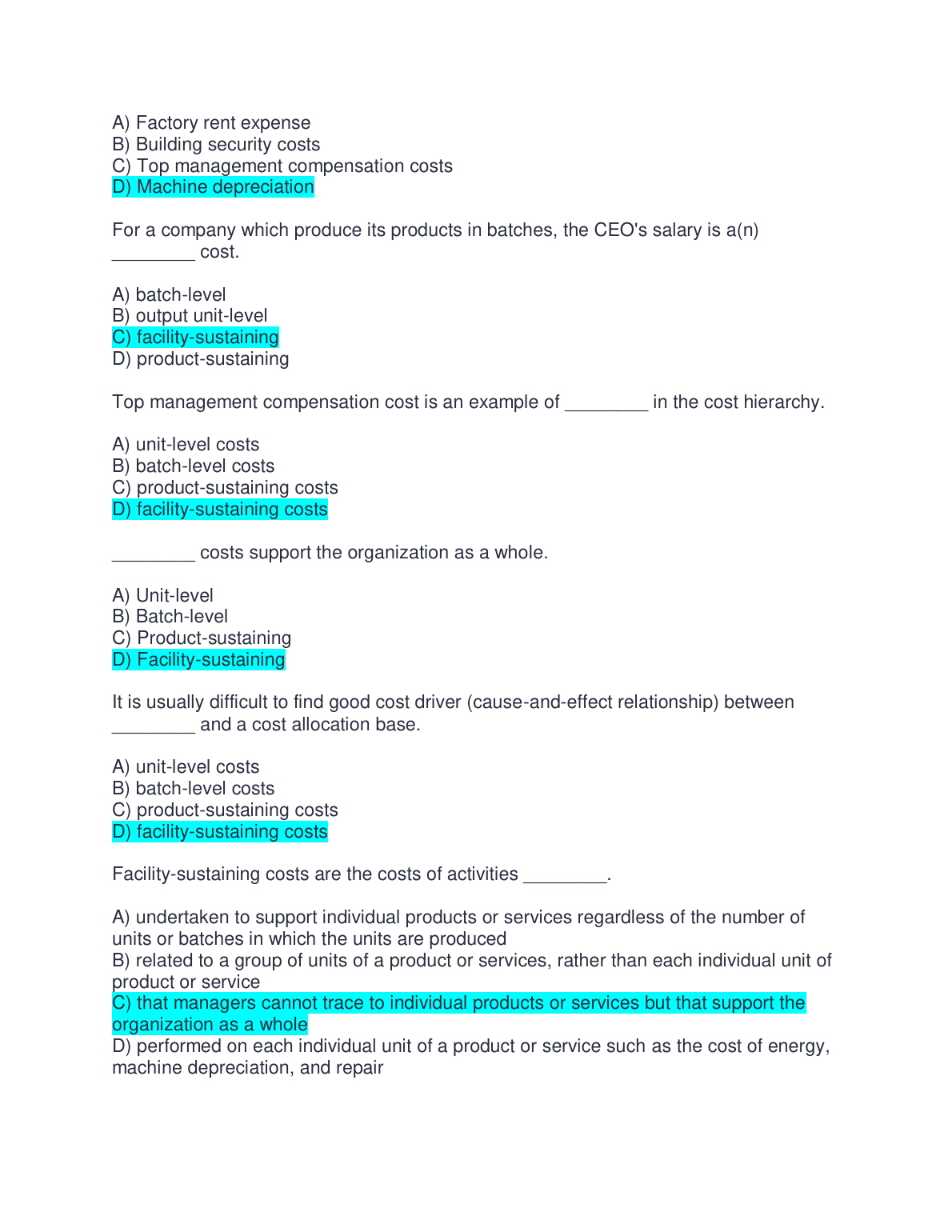 Test Bank for Cost Accounting: A Managerial Emphasis, 18th Edition by Charles T. Horngren, Srikant M. Datar, and Madhav V. Rajan - ACCT 3270 Exam 2