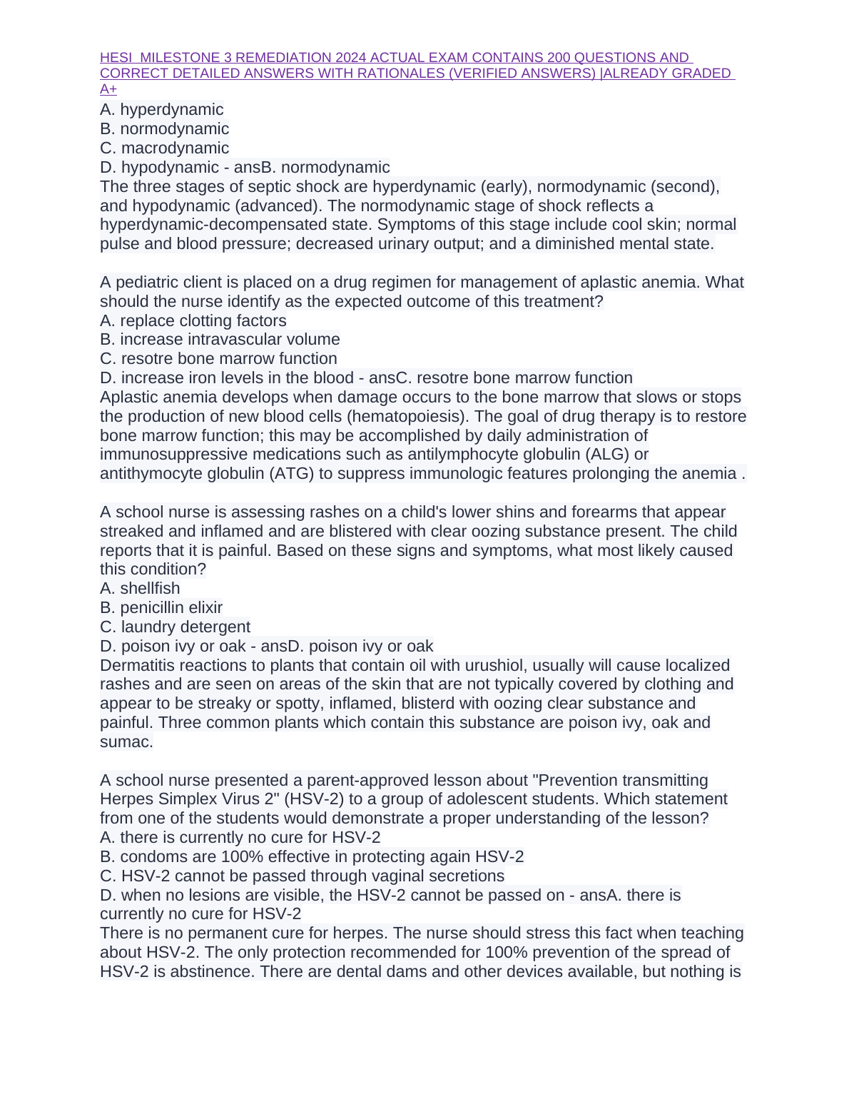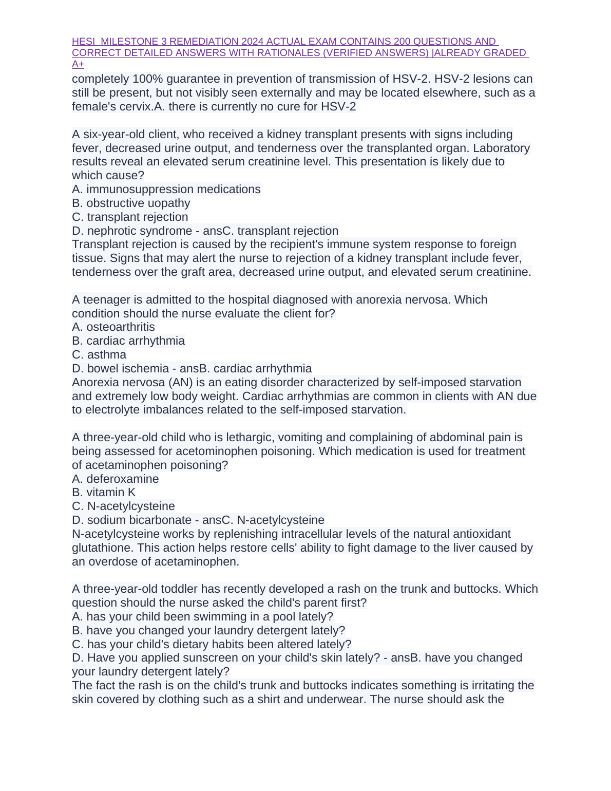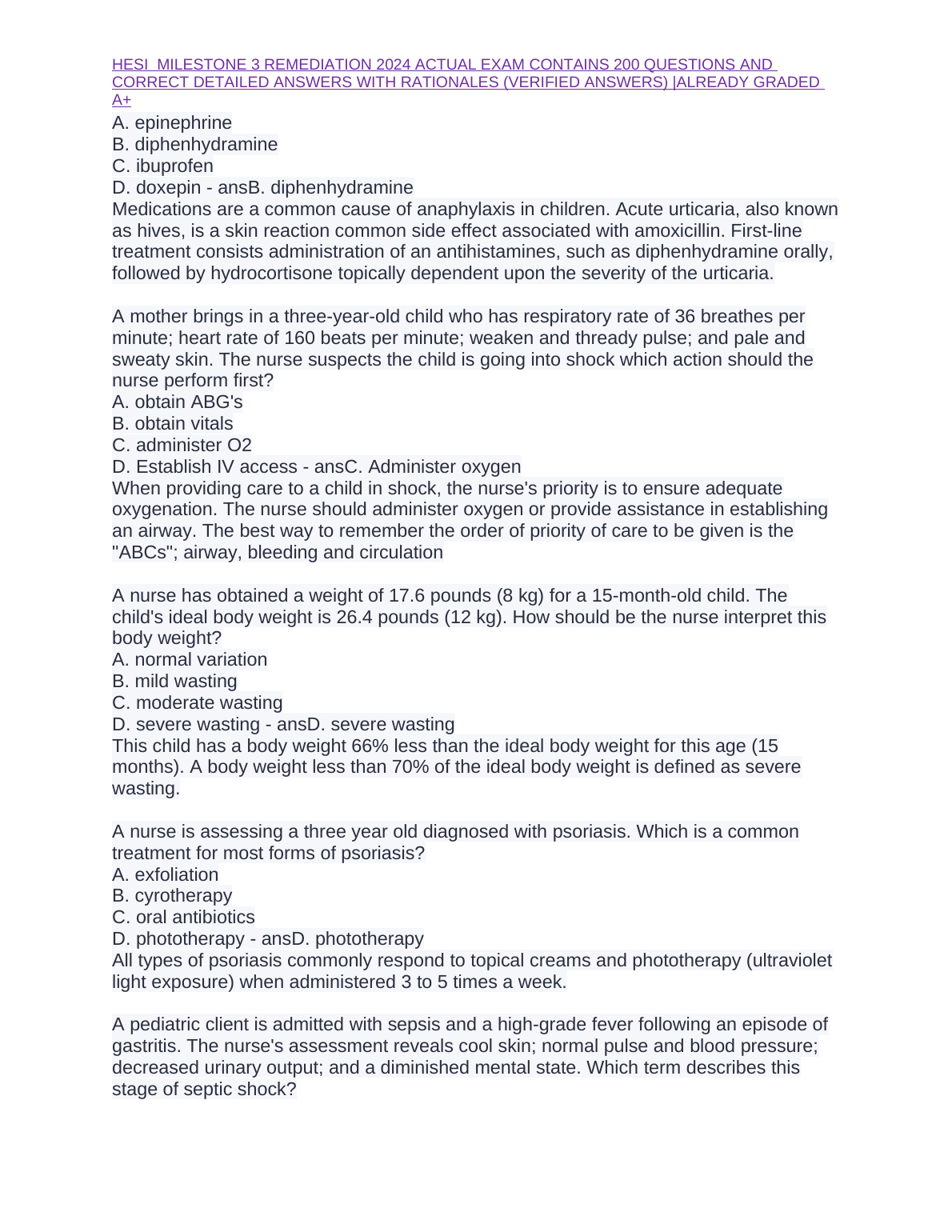 Unlock success in your nursing program with our comprehensive study guide for the HESI Milestone 3 Remediation 2024 Exam. This premium resource features 200 actual exam questions, each paired with a verified, detailed answer and a clear rationale to deepen your understanding. This A+ graded material is meticulously designed to cover all essential topics, ensuring you are fully prepared to excel. Stop worrying about your exams and start studying smarter. This guide is your key to mastering the content, boosting your confidence, and passing the HESI Milestone 3 on your very first try.